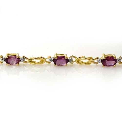 3.73 CTW Amethyst & Diamond Bracelet 10K Yellow Gold ---- Luxury Designer Brand Bracelet Appraised Retail Price at $2,100 ---- SKU Number US13588 10k Yellow gold Bracelet Size is 7 Inches, Bracelet measuring approx. 7" x 1/4", weighing in total approx. 4.8 grams. Made in the USA and is stamped 10k, Main stone 3.71 carat total weight containing 8 pieces of Intense Translucent Purple color with AAA quality Oval shape cut Amethyst , Stone #2 0.02 carat total weight containing 2 pieces of H-I color with VS/SI quality Round shape cut