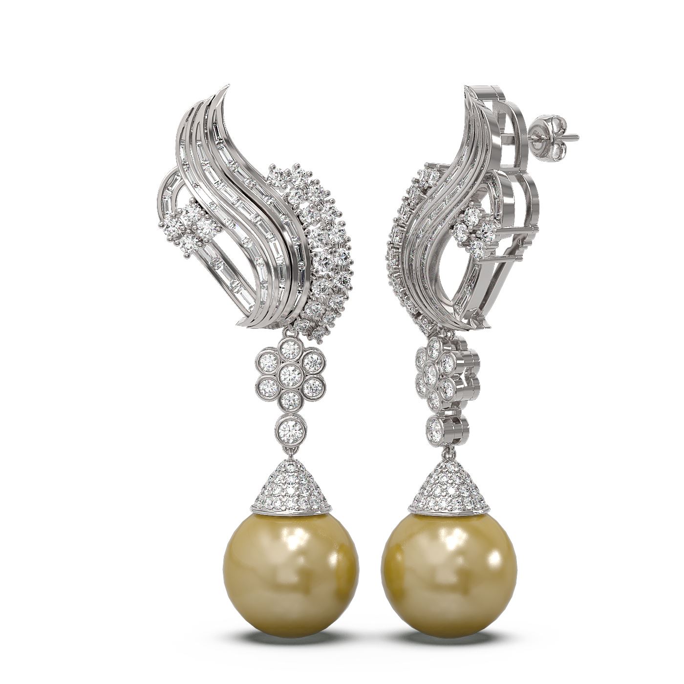 REF-426A8N - SKU: 55058 ---- 3.73 ctw Diamond & Pearl Earrings 18K White Gold