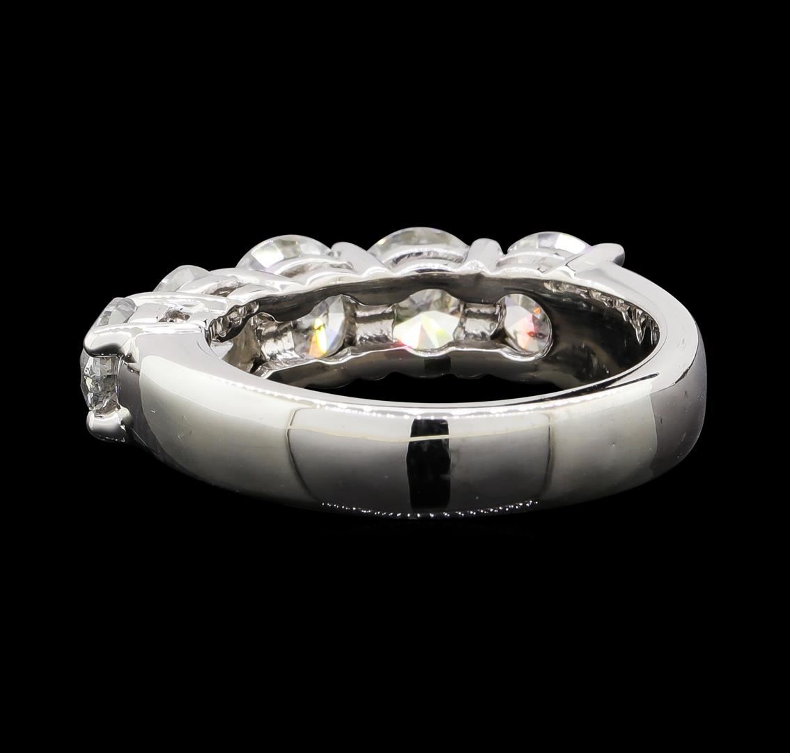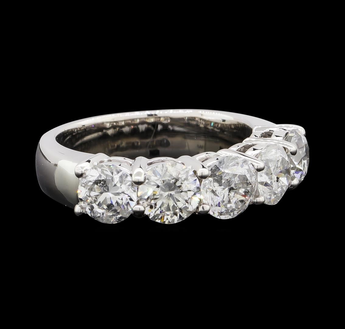 One electronically tested 14KT white gold lady's cast 5-stone wedding ring with a bright polish finish. The featured lady's ring has a shank measuring 4.60 millimeters wide. Identified with markings of '14K'. Condition is new, good workmanship. Containing: Five prong set round brilliant cut diamonds, measuring 5.90 - 5.50 x 3.56mm (depth est.) approximate total weight of 5 Stones = 3.73ct. Graded in the setting. Clarity I-1 to I-2. Color: G - I Cut Good. Total Weight of Diamonds 3.73ct.. Total Weight of Ring 8.00gm. GAS Appraised at $14,215.00.