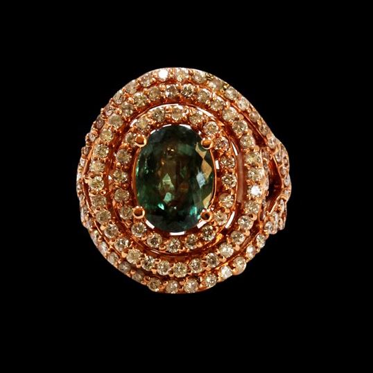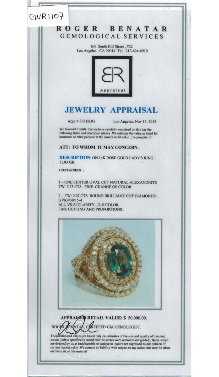 14K ROSE GOLD NATURAL ALEXANDRITE RING:11.83 GRAMS/DIAMOND:2.07CT/ALEXANDRITE:3.73CT/#GVR1107