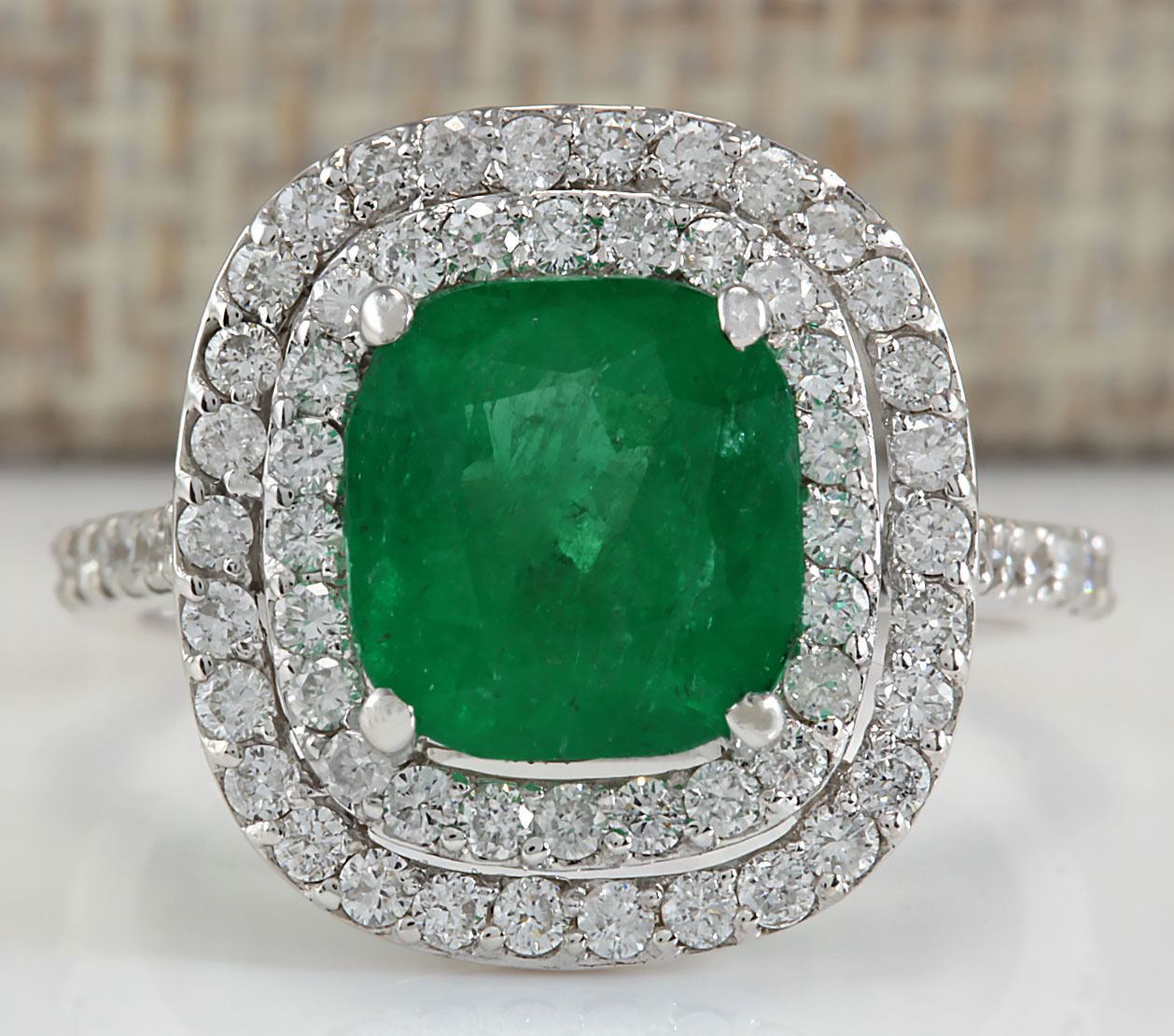 3.74 CTW Natural Emerald And Diamond Ring In 14K White Gold