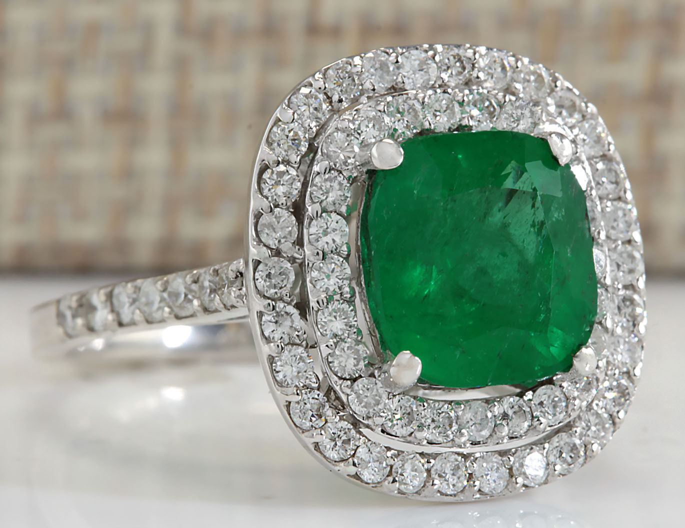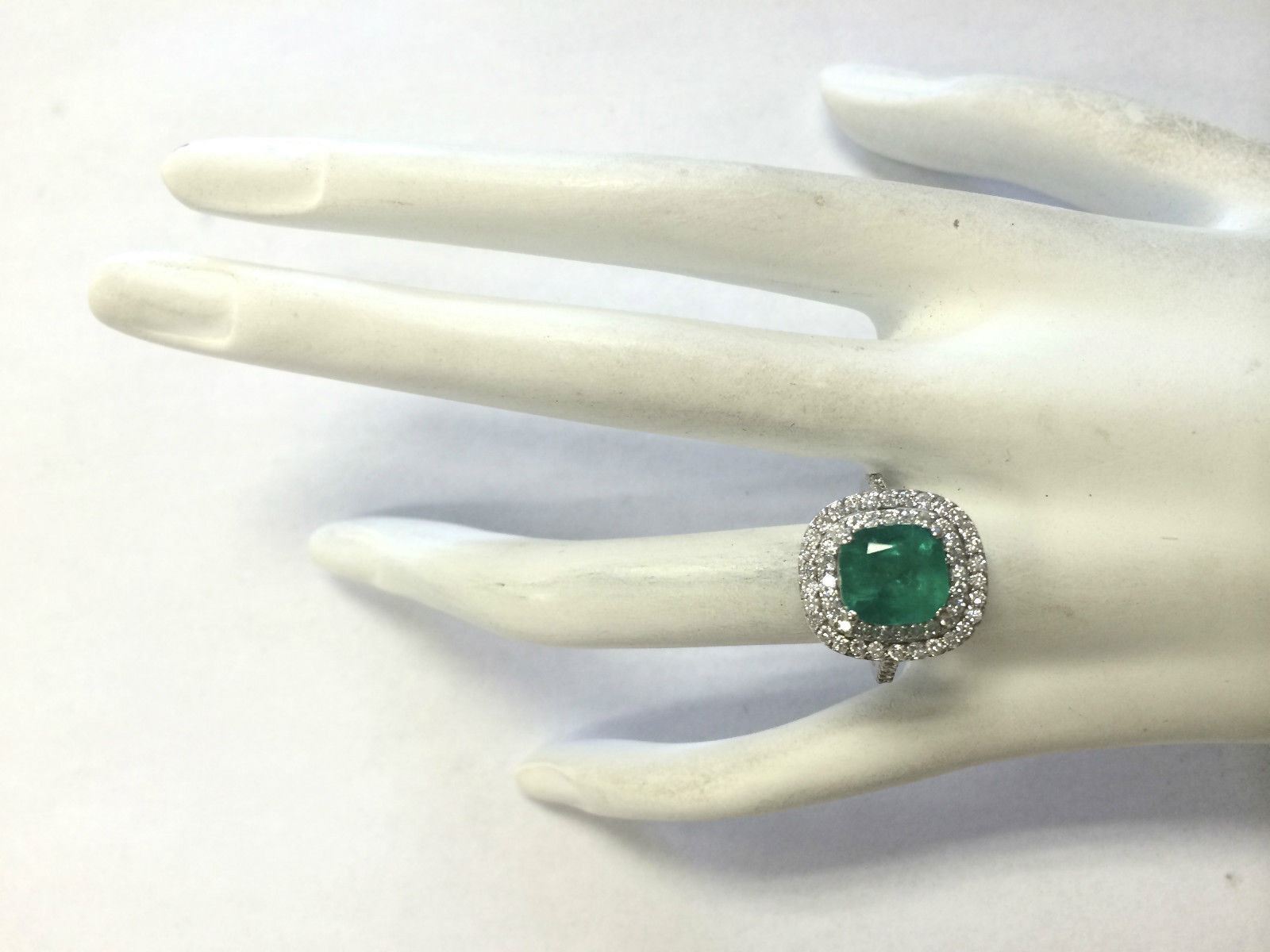 3.74 CTW Natural Emerald And Diamond Ring In 18K White Gold