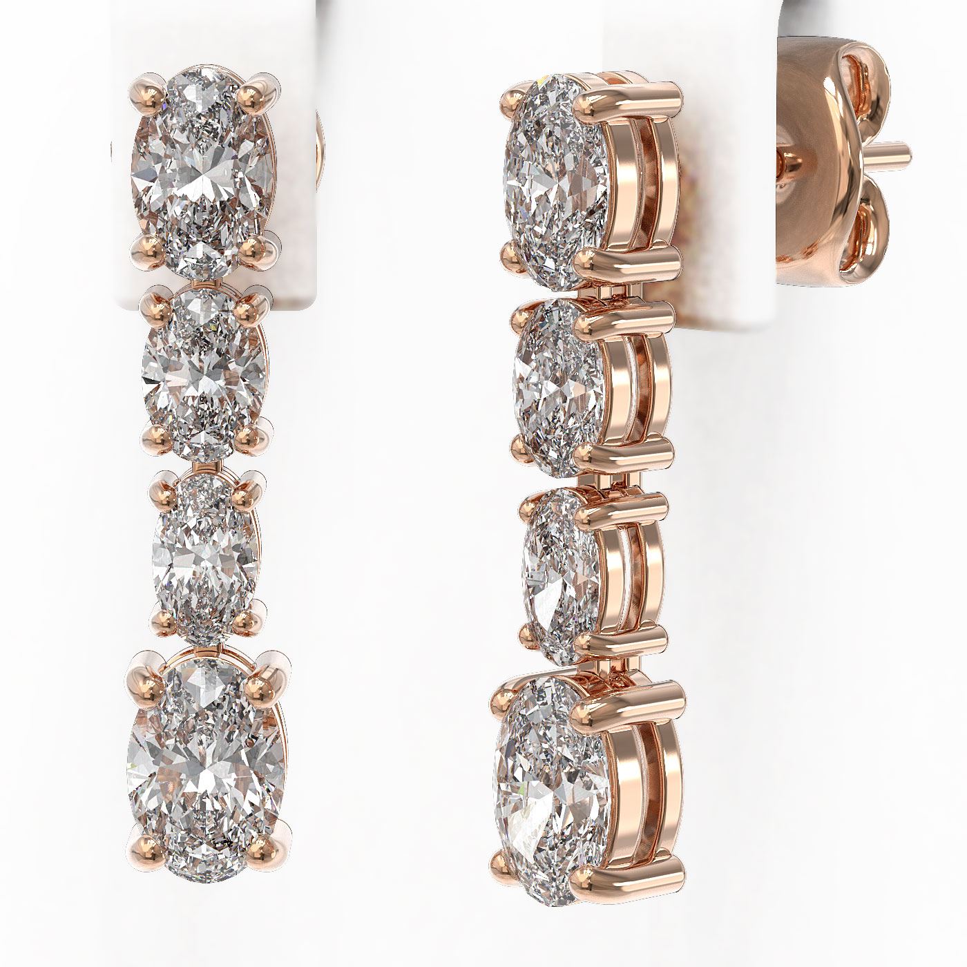 REF-586M3G - SKU: 46336 ---- 3.74 ctw Oval Diamond Earrings 18K Rose Gold