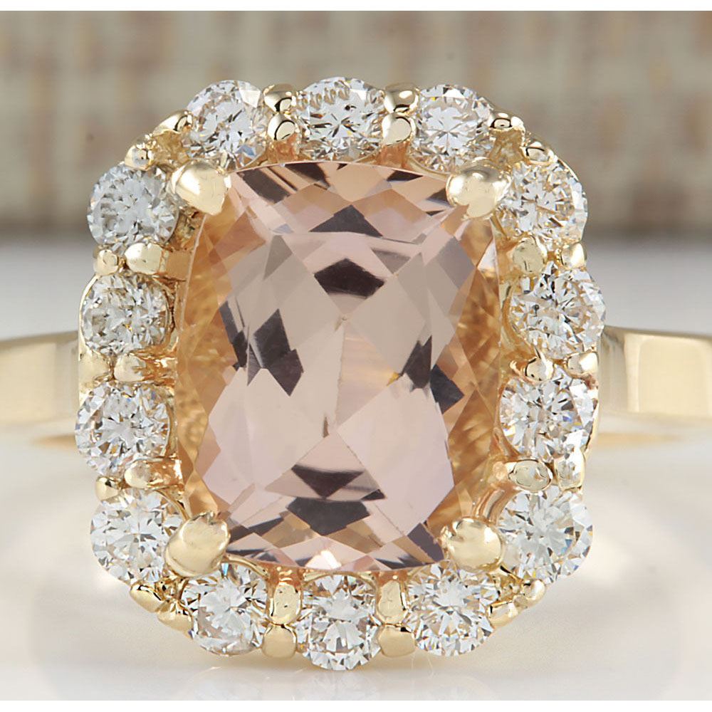 3.75 CTW Natural Morganite And Diamond Ring 14K Solid Yellow Gold