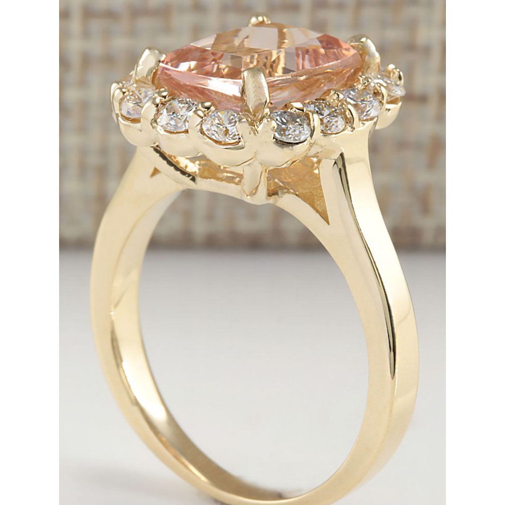 3.75 CTW Natural Morganite And Diamond Ring 14K Solid Yellow Gold