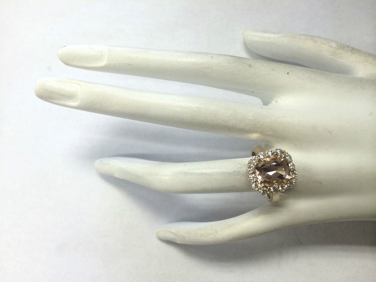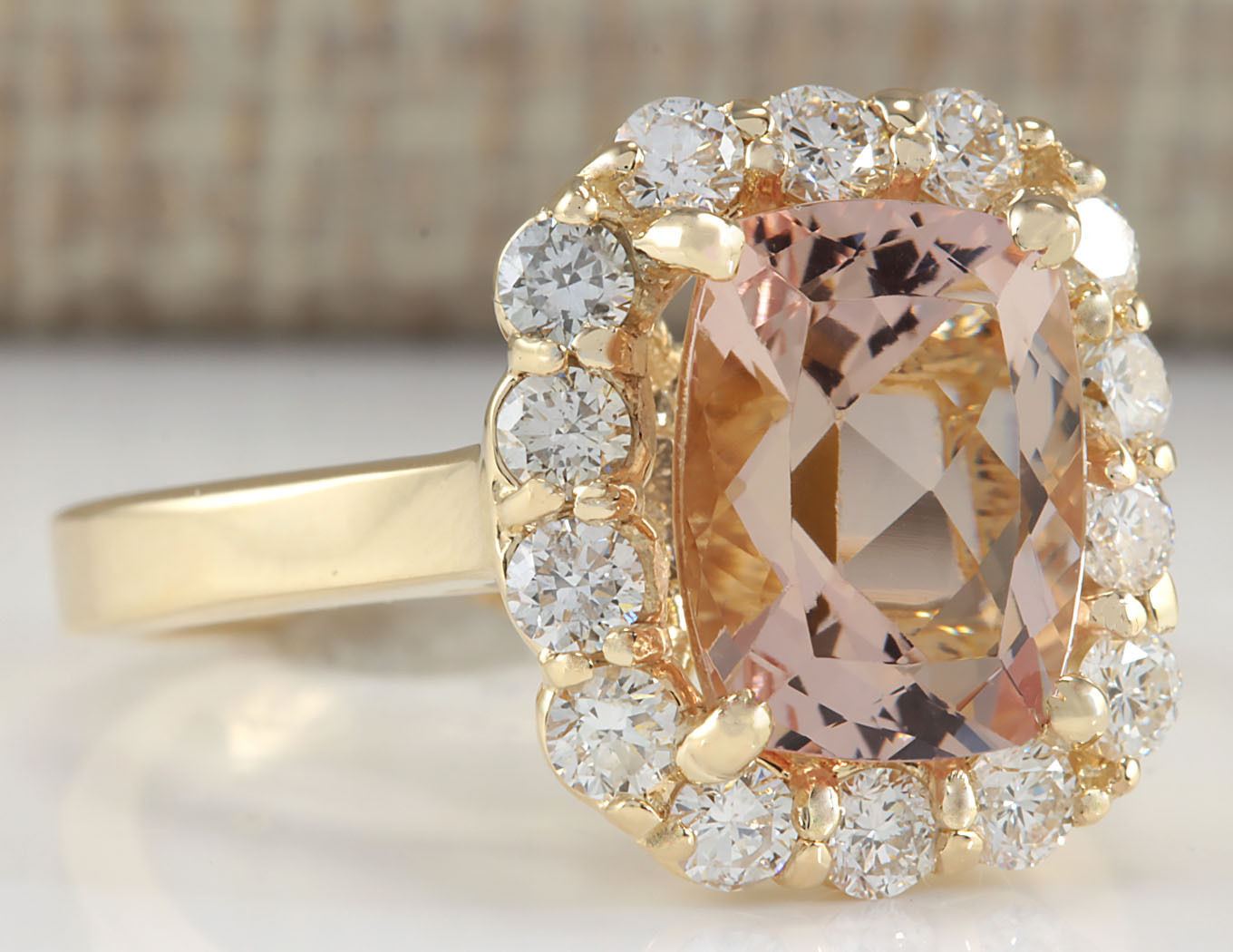 3.75 CTW Natural Morganite And Diamond Ring 18K Solid Yellow Gold