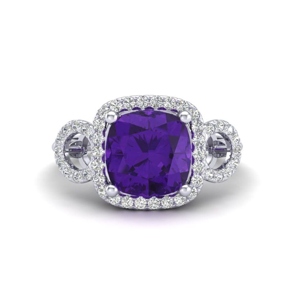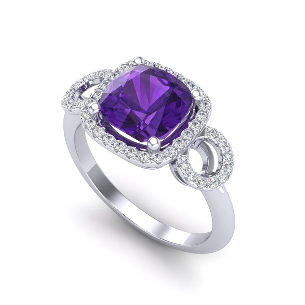 REF-51M2G - SKU: 22995 ---- 3.75 ctw Amethyst & Micro VS/SI Diamond Certified Ring 18k White Gold