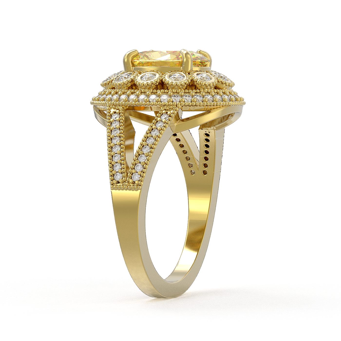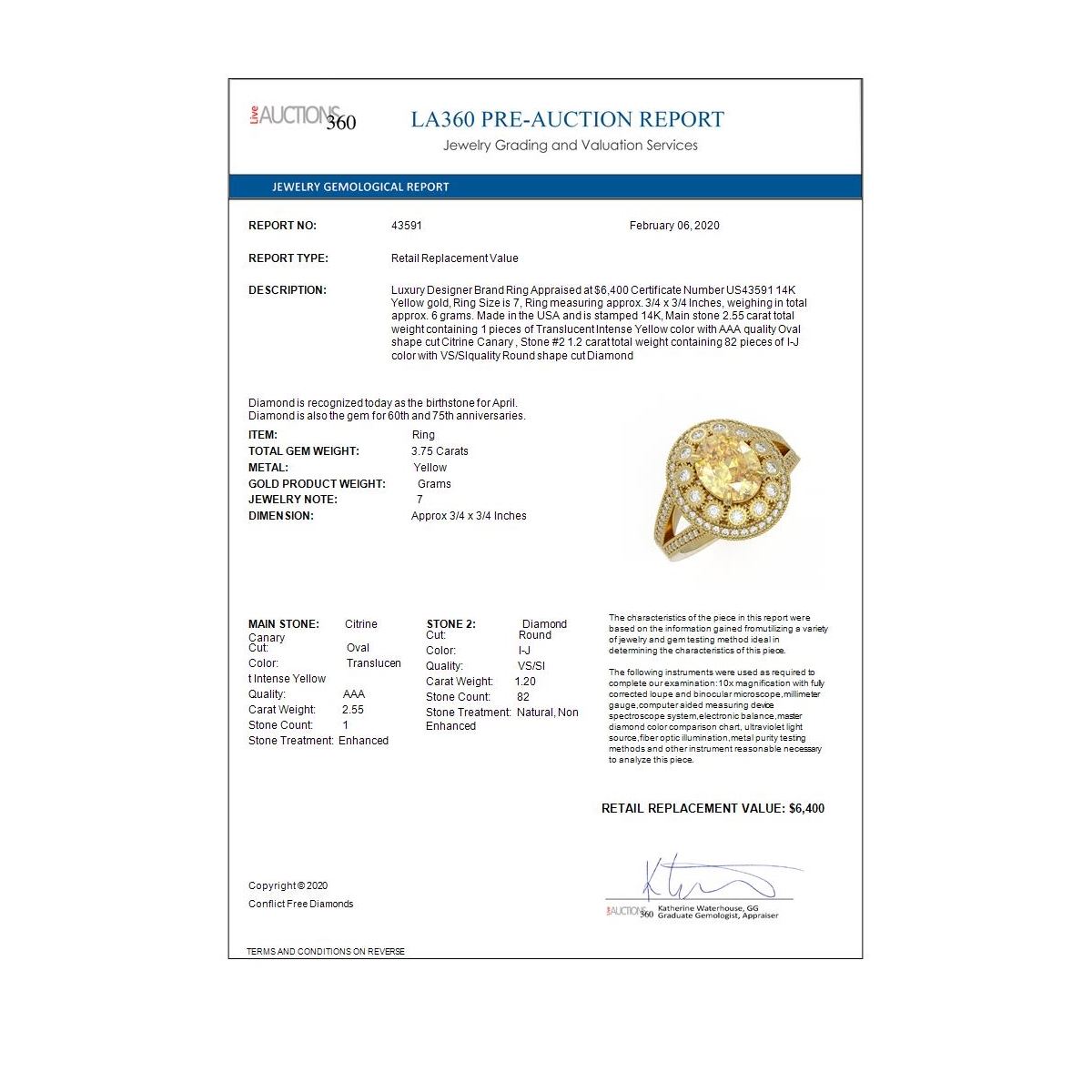 REF-129X3A - SKU: 43591 ---- 3.75 ctw Canary Citrine & Diamond Victorian Ring 14K Yellow Gold