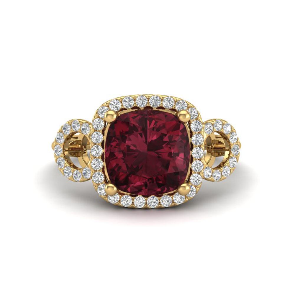 REF-50G6W - SKU: 23005 ---- 3.75 ctw Garnet & Micro VS/SI Diamond Certified Ring 18k Yellow Gold