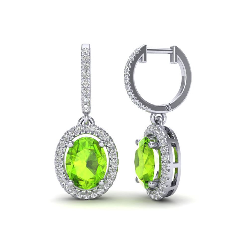 SKU: 20329 ---- 3.75 ctw Peridot & Micro Pave VS/SI Diamond Earrings 18k White Gold