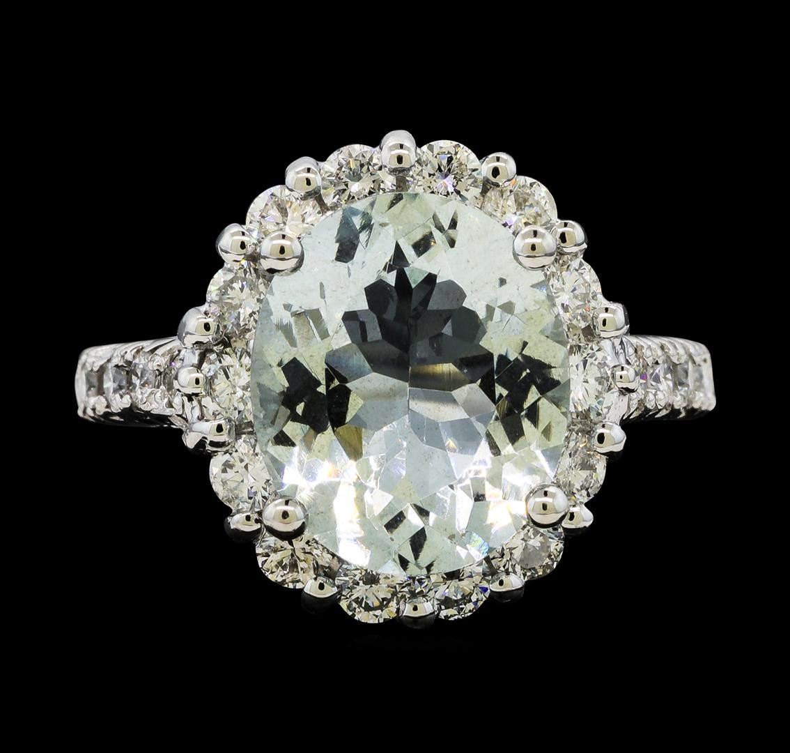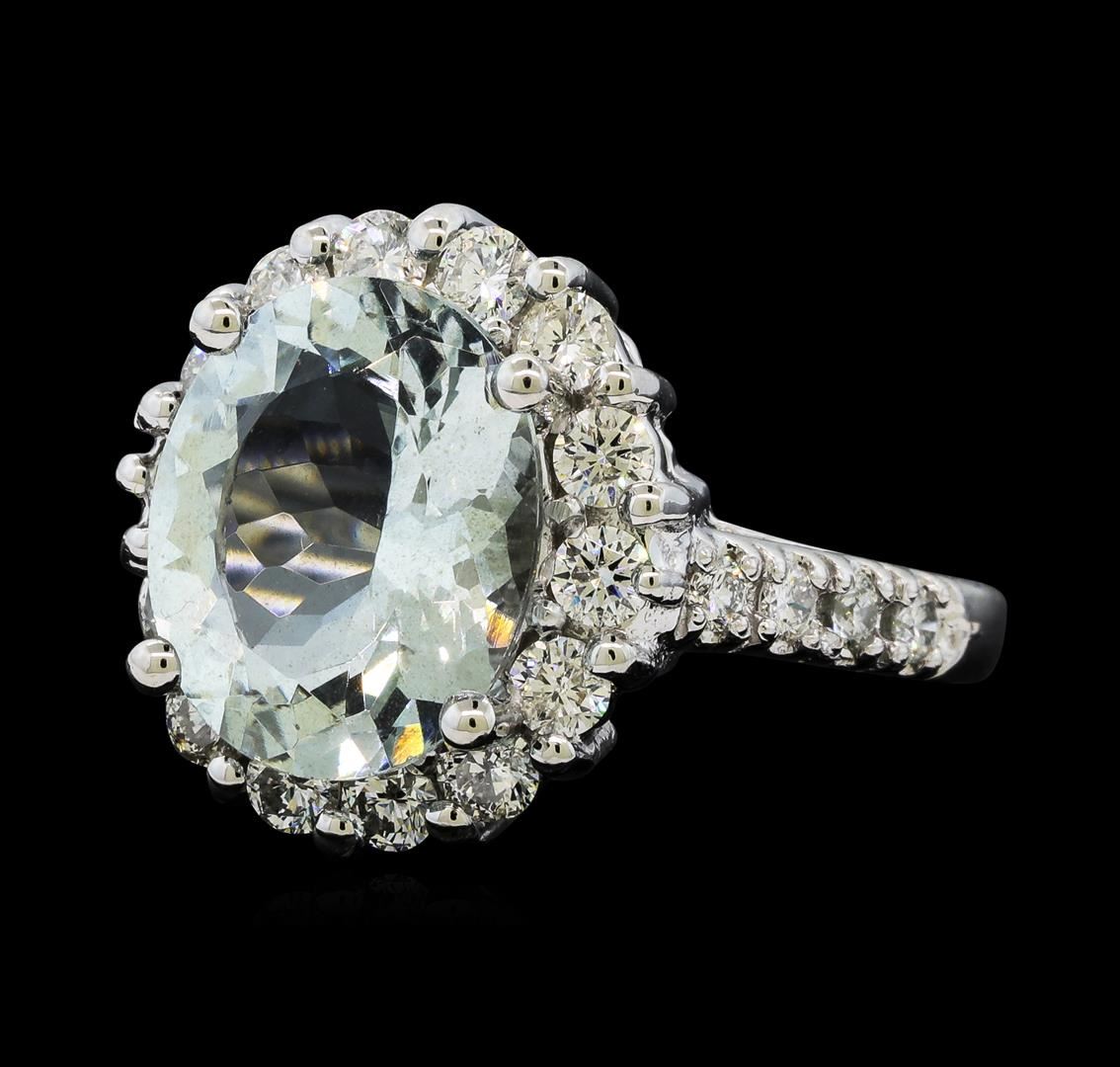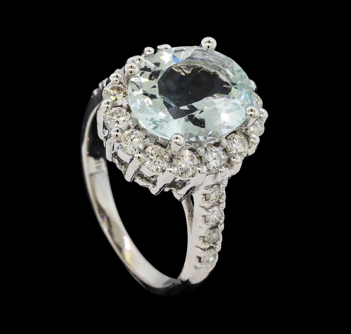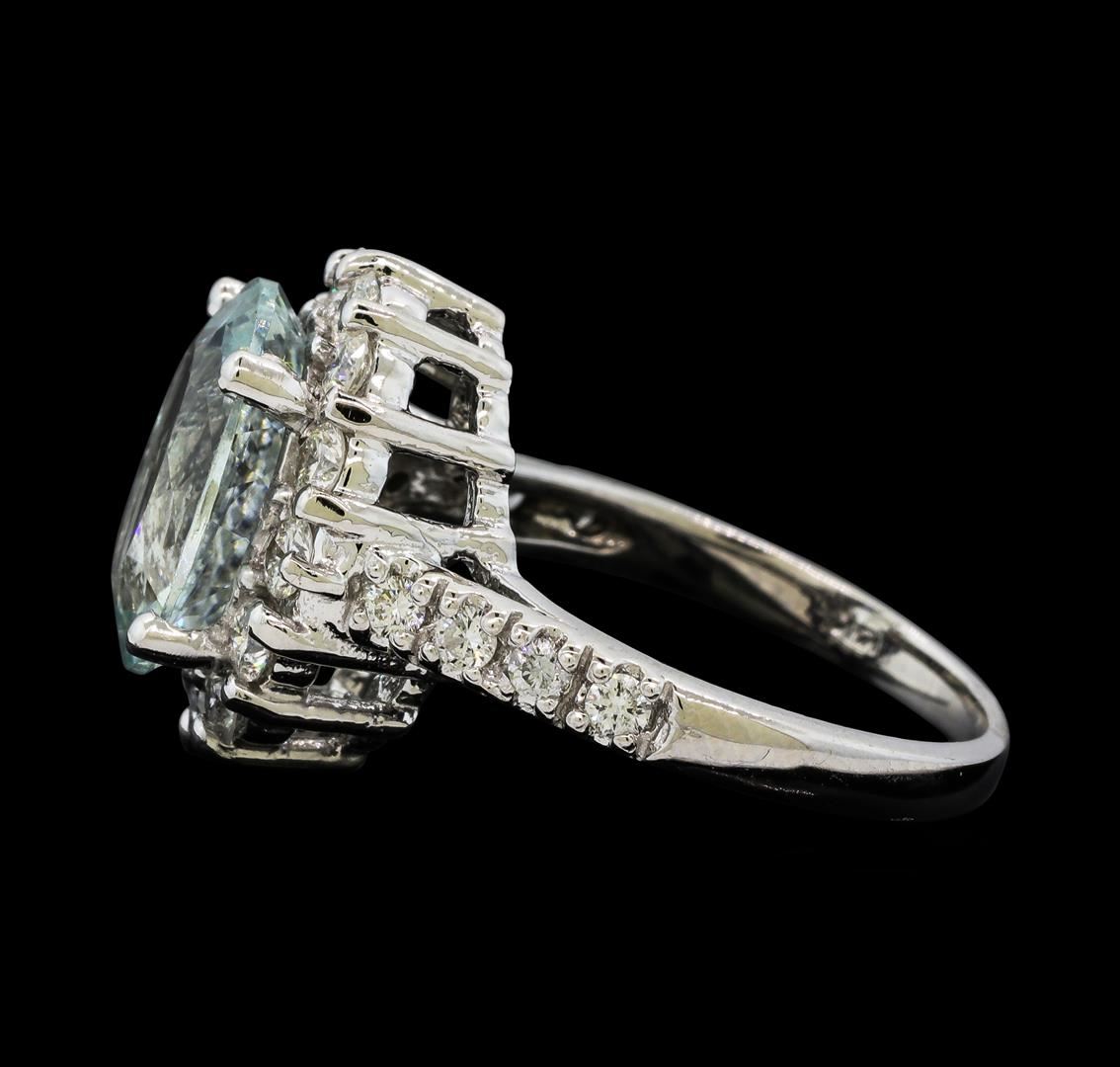 One Aquamarine and Diamond Ring including: 14KT White Gold weighing a total of 6.20 grams, Aquamarine weighing a total of 3.76ct, and 22 Diamonds weighing a total of 0.98ctw.