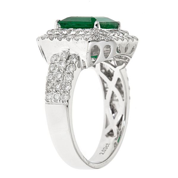 One lady's ring featuring: 18KT white gold weighing 5.96 grams containing one emerald weighing 3.76ct and diamonds weighing 0.46ctw.