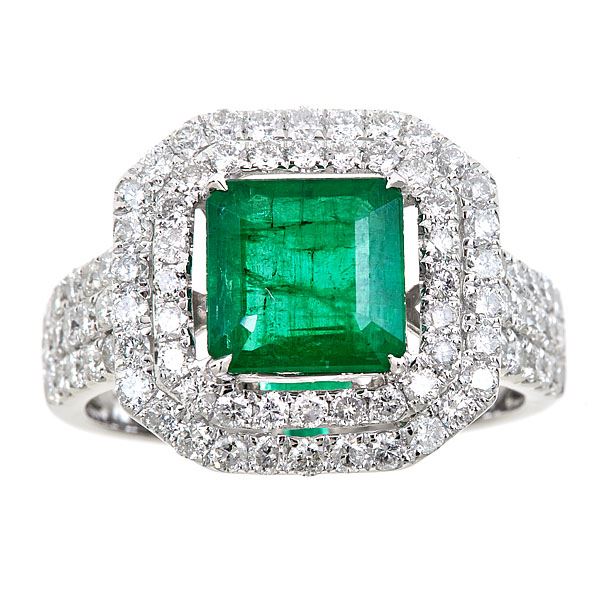 One lady's ring featuring: 18KT white gold weighing 5.96 grams containing one emerald weighing 3.76ct and diamonds weighing 0.46ctw.