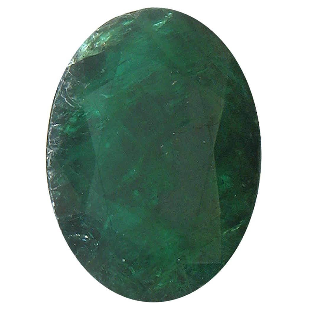 One oval mixed cut natural emerald, measuring 12.00 x 8.50 x 5.00mm, exact weight 3.77ct., clarity is heavily included, type III, medium dark, very slightly grayish, very slightly bluish green color, (GIA vslbG 6/3) Indications of multiple laboratory enhancements, including high temperature heat treatment. Westfield Appraised at $1,505.00.