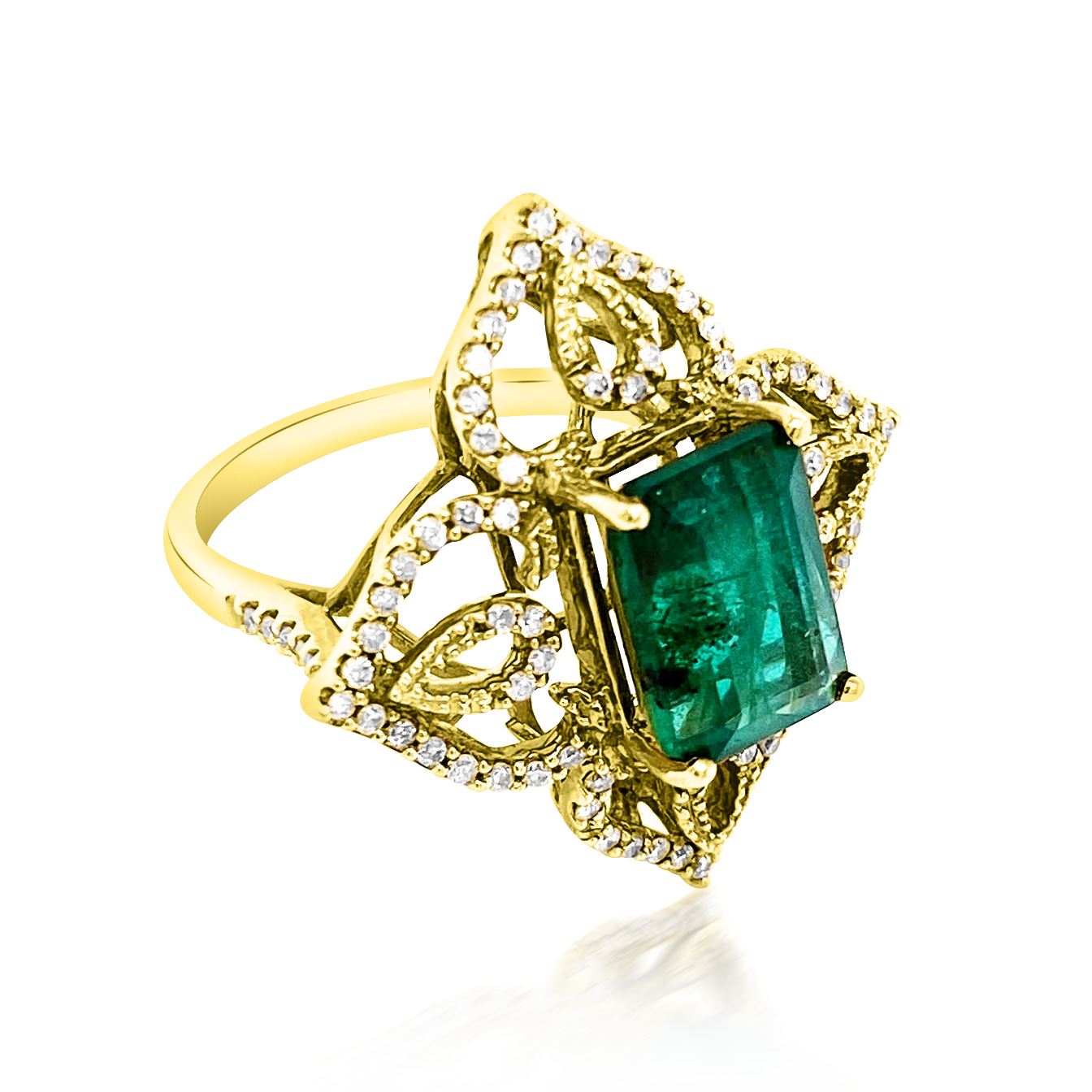 3.77ct Natural Emerald 14K White Gold 5.84gm Diamond 0.46ct Ring #PJ14170