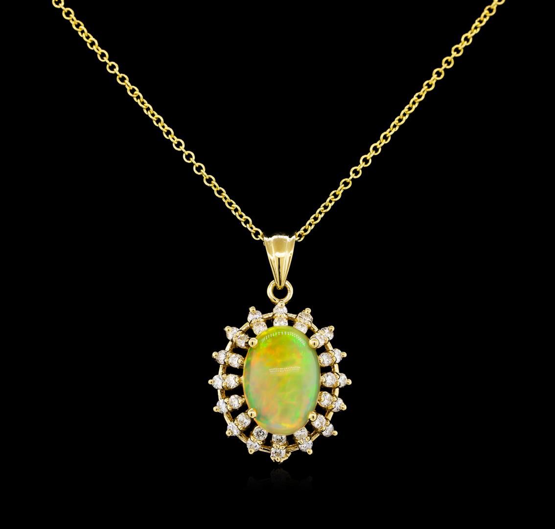 One pendant featuring: 14KT yellow gold weighing 4.27 grams containing one opal with a total weight of 3.78ct and diamonds with a total weight of 0.75ct.