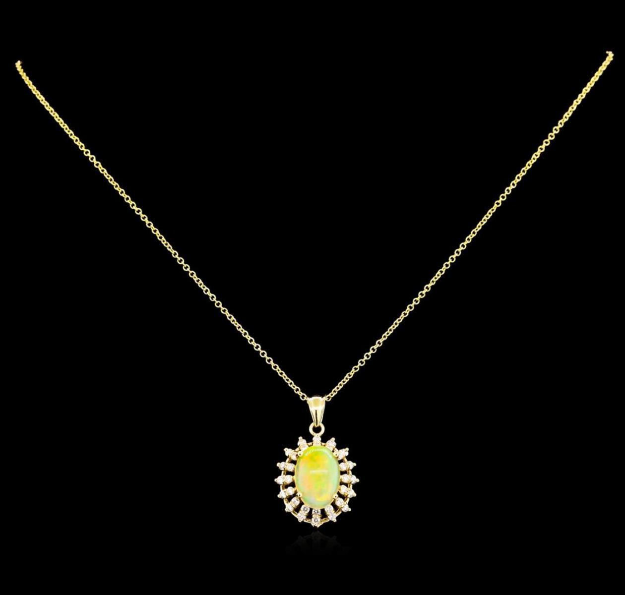 One pendant featuring: 14KT yellow gold weighing 4.27 grams containing one opal with a total weight of 3.78ct and diamonds with a total weight of 0.75ct.