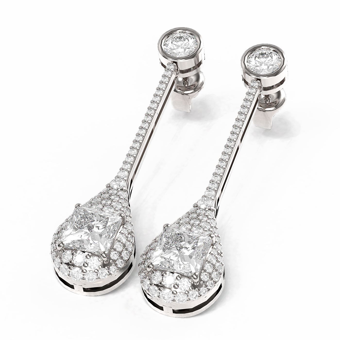 SKU: 56876 ---- 3.79 ctw Princess Diamond Earrings 18K White Gold