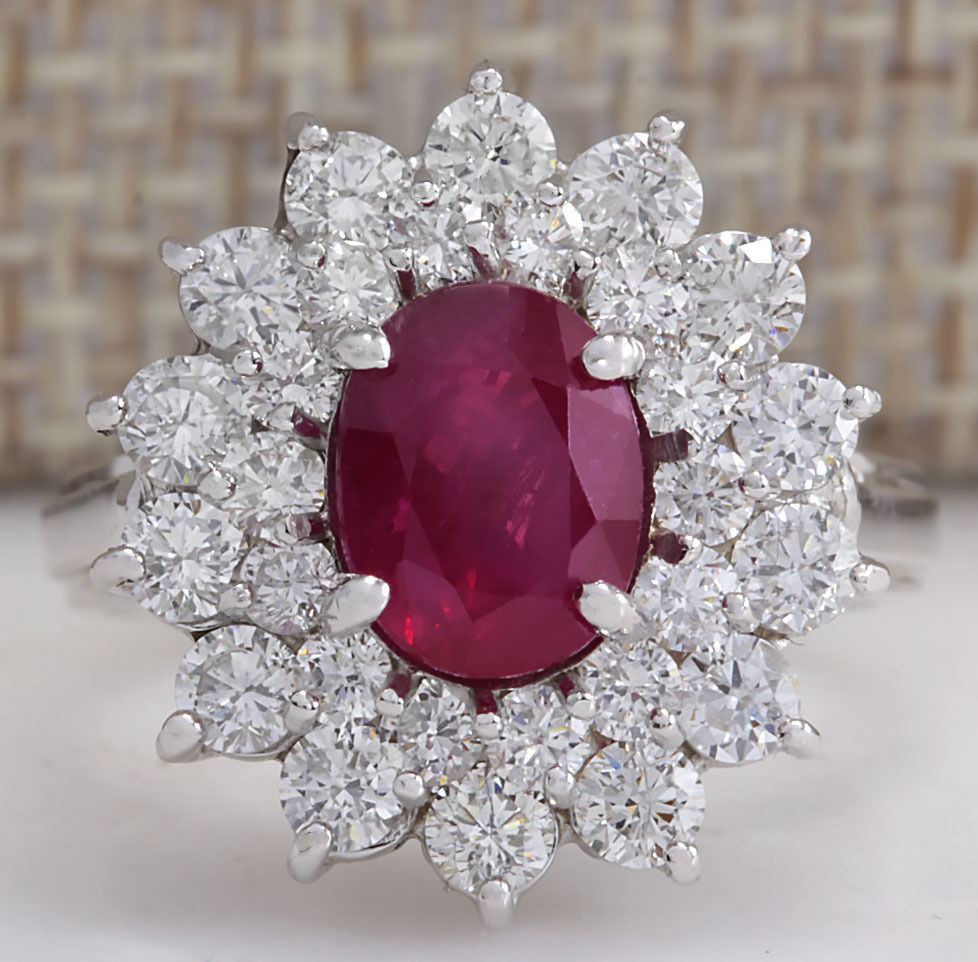 Stamped: 14K Ring Size: 6 Total Ring Weight: 5.2 Grams Diamond Weight: Total natural diamond weight is 1.60carat. SI1-SI2 clarity / G-H color Gemstone Weight: Total Natural Mozambique Ruby Weight is 2.19ctw (Measures: 8.21x6.37mm) (Heated on no glass or led treatment very nice hight quality stone) Face Measures: 18.15x16.57mm Main stone color: Red [SKU:702804]