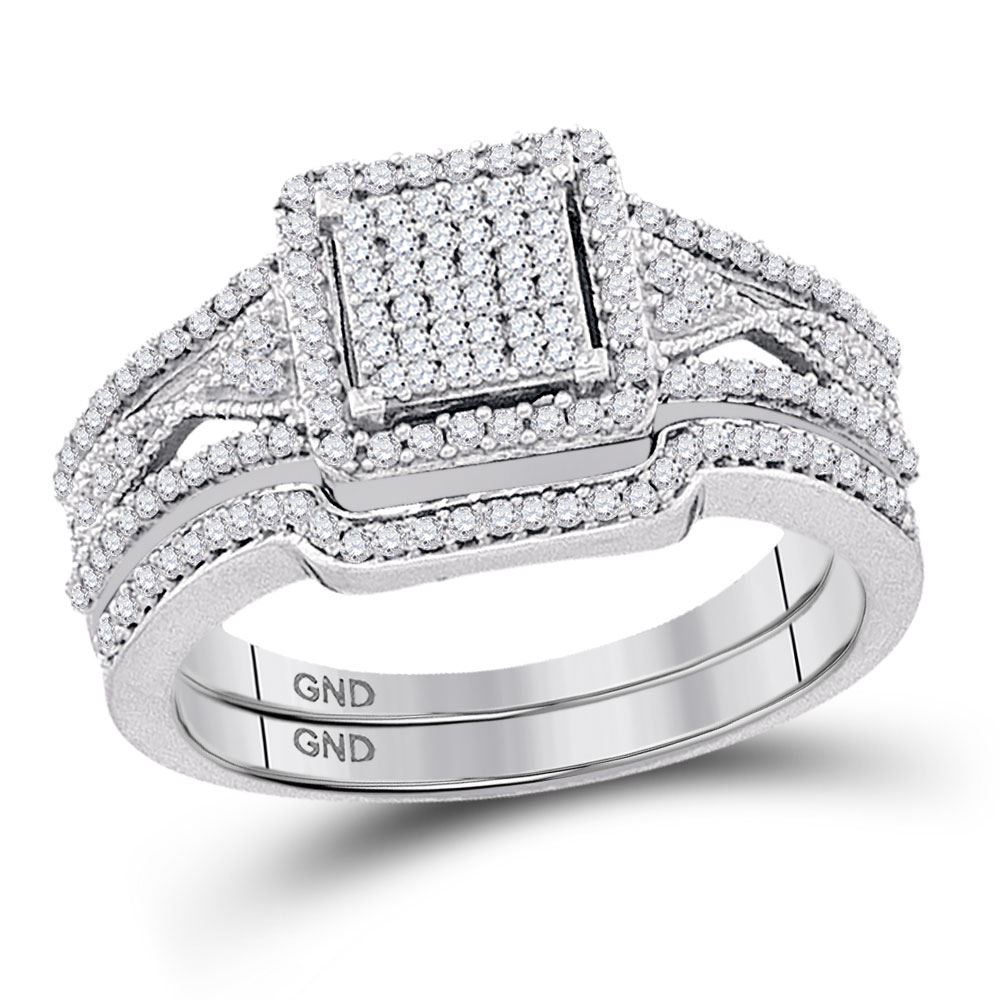 REF-44A2M - 3/8 CTW Diamond Cluster Bridal Wedding Ring 10kt White Gold - REF-44A2M