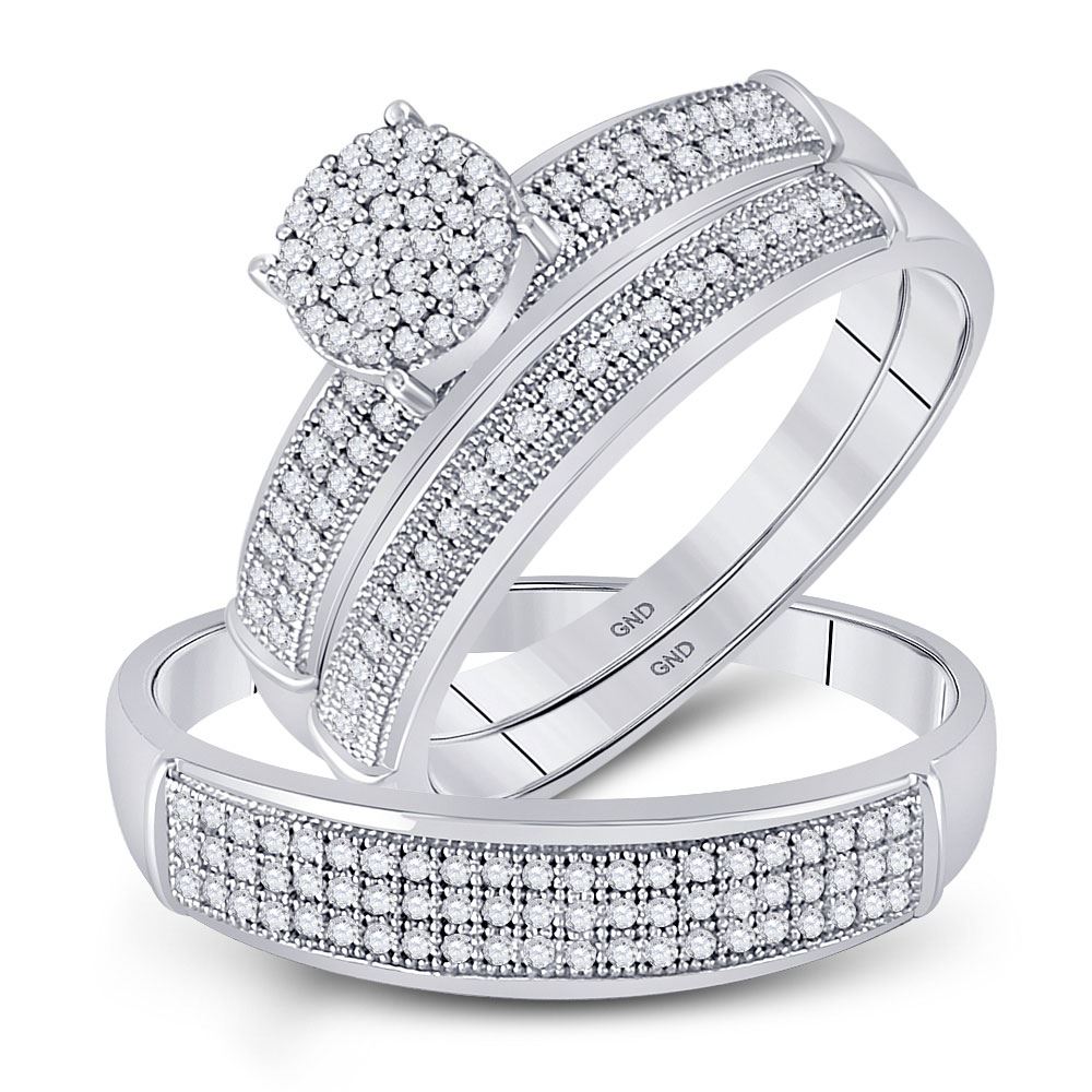 REF-45Y2N - 3/8 CTW His Hers Round Diamond Cluster Matching Wedding Set 10kt White Gold - REF-45Y2N