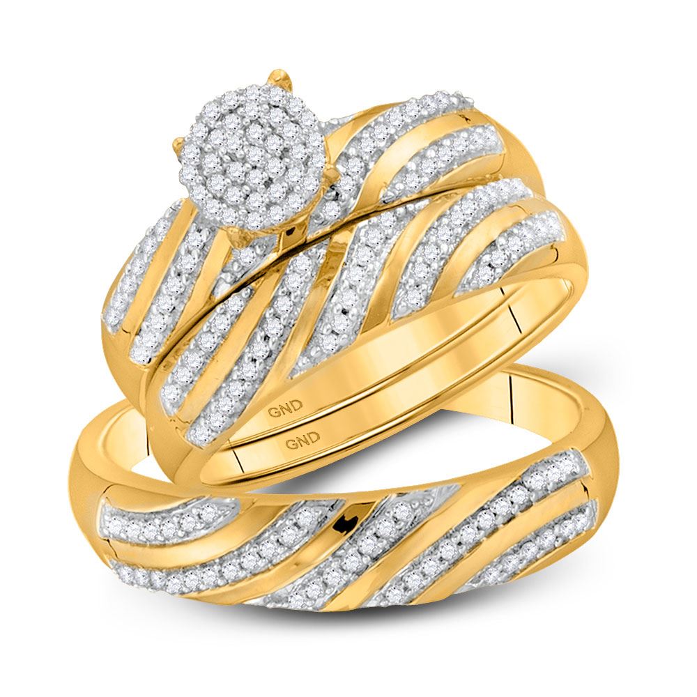 REF-46R3X - 3/8 CTW His Hers Round Diamond Cluster Matching Wedding Set 10kt Yellow Gold - REF-46R3X
