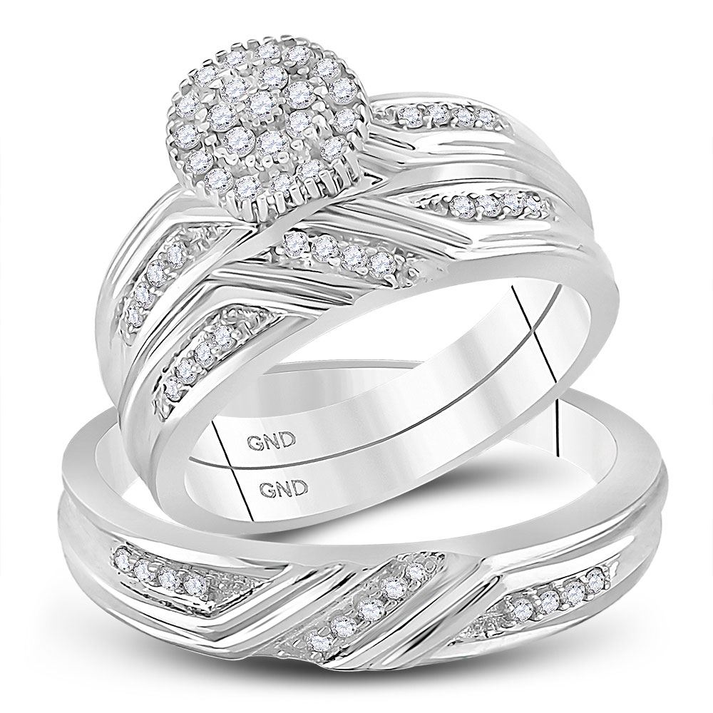 REF-68X2T - 3/8 CTW His Hers Round Diamond Cluster Matching Wedding Set 14kt White Gold - REF-68X2T