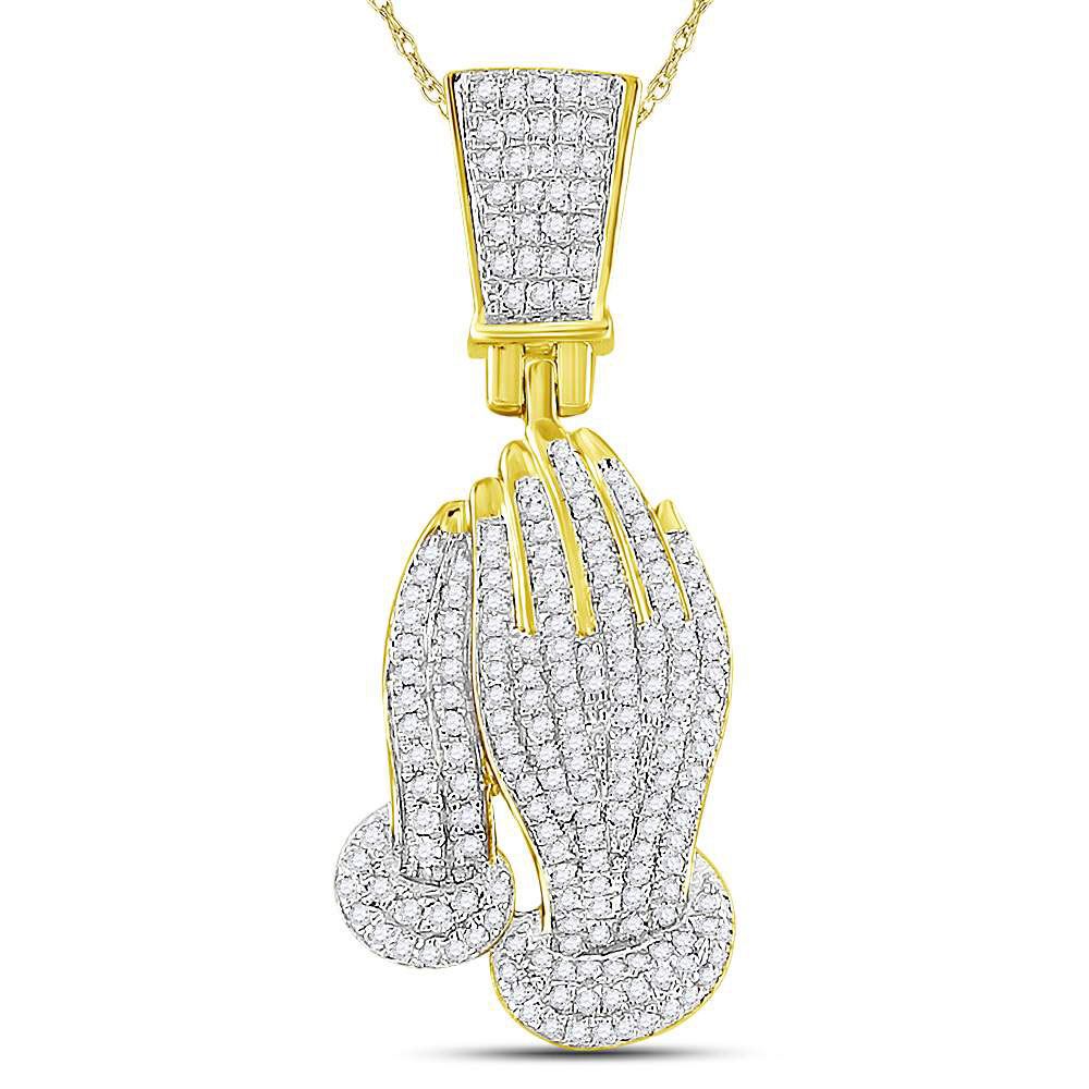 10kt Yellow Gold Mens Round Diamond Praying Hands Faith Charm Pendant 3/8 Cttw