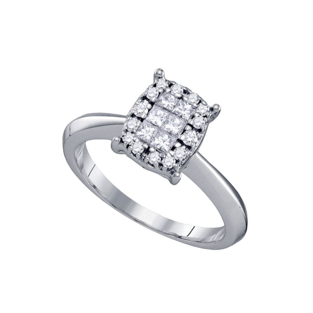 14kt White Gold Womens Princess Round Diamond Cluster Bridal Wedding Engagement Ring 3/8 Cttw