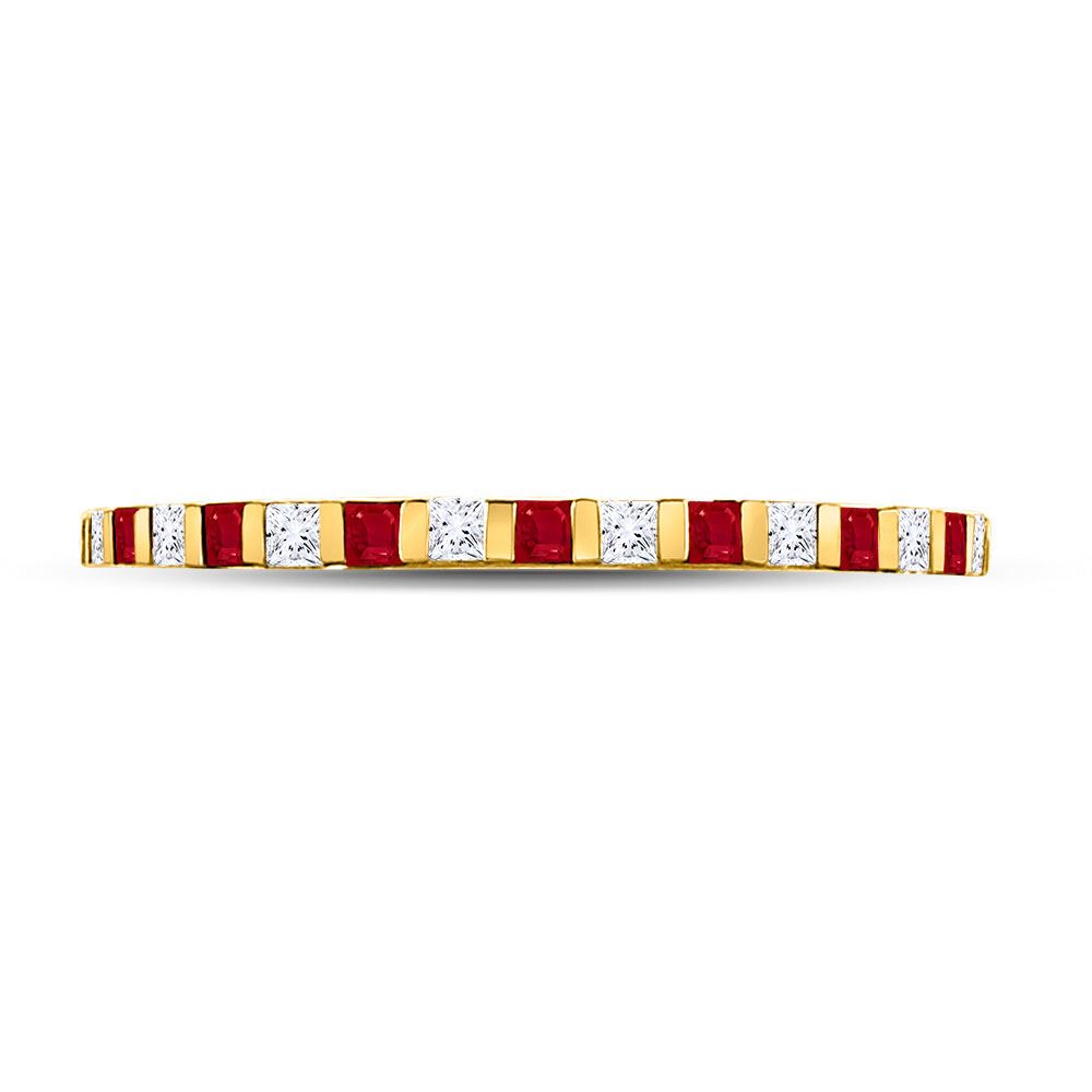 10kt Yellow Gold Womens Princess Ruby Diamond Alternating Stackable Band Ring 3/8 Cttw