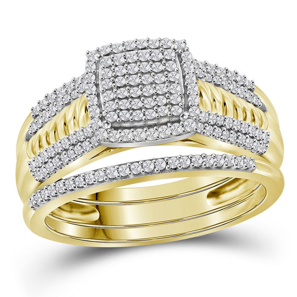 10kt Yellow Gold Womens Round Diamond Cluster Bridal Wedding Engagement Ring Band Set 3/8 Cttw