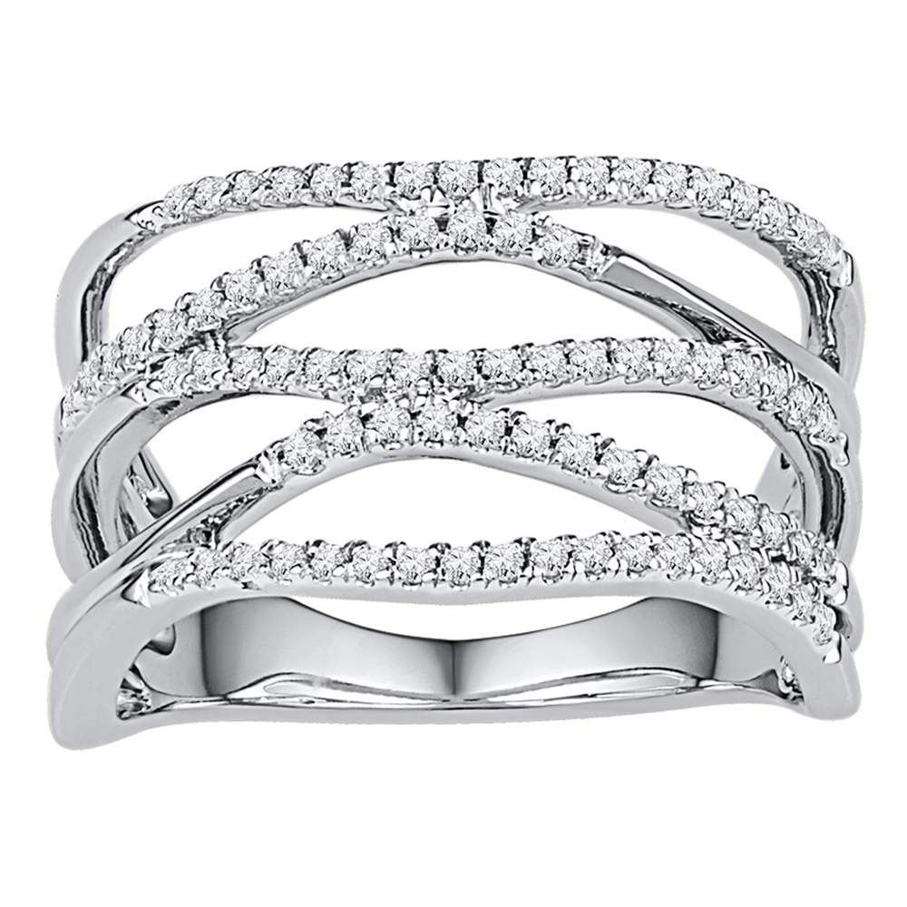 10kt White Gold Womens Round Diamond Crossover Band Ring 3/8 Cttw