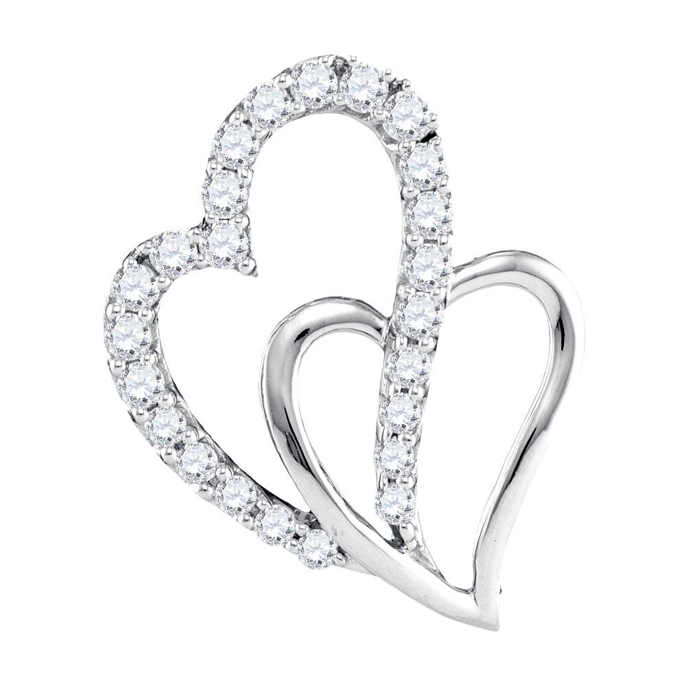 10kt White Gold Womens Round Diamond Double Heart Pendant 3/8 Cttw