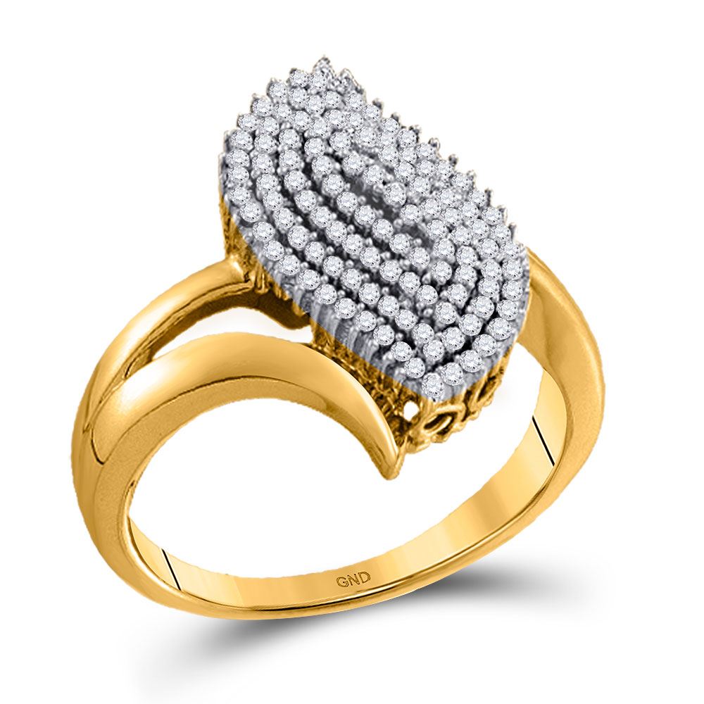 10kt Yellow Gold Womens Round Diamond Oval Marquise-shape Cluster Ring 3/8 Cttw
