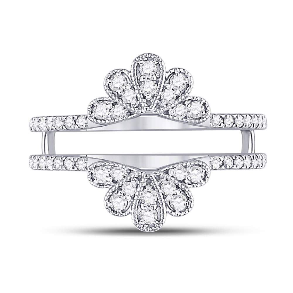14kt White Gold Womens Round Diamond Wrap Ring Guard Enhancer 3/8 Cttw