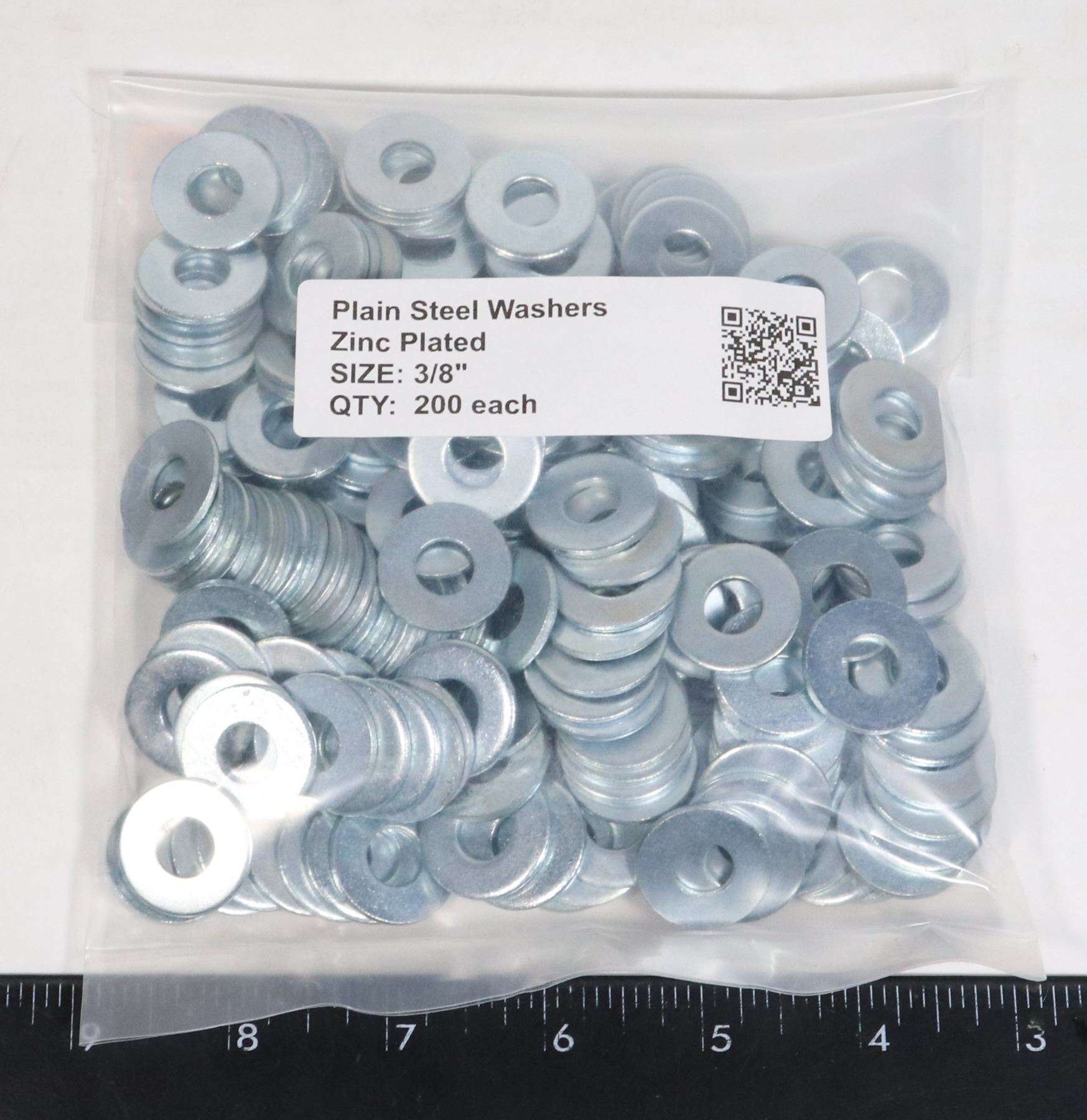3/8" PLATED STEEL WASHERS. PACKAGE OF 200