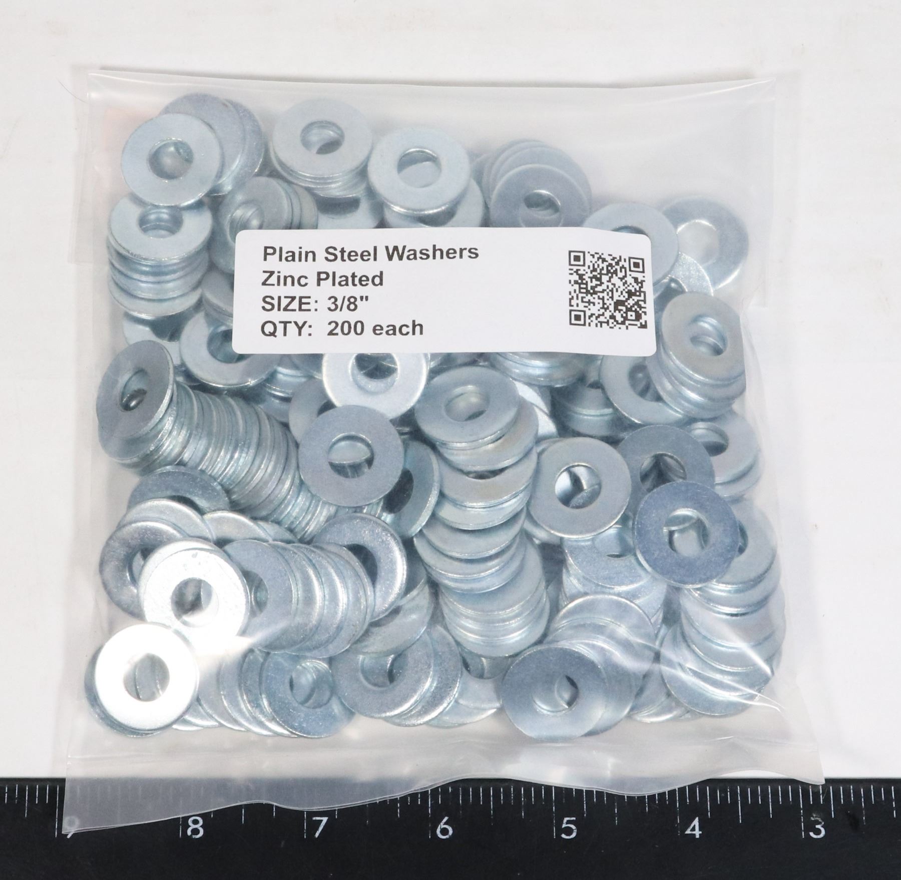 3/8" PLATED STEEL WASHERS. PACKAGE OF 200