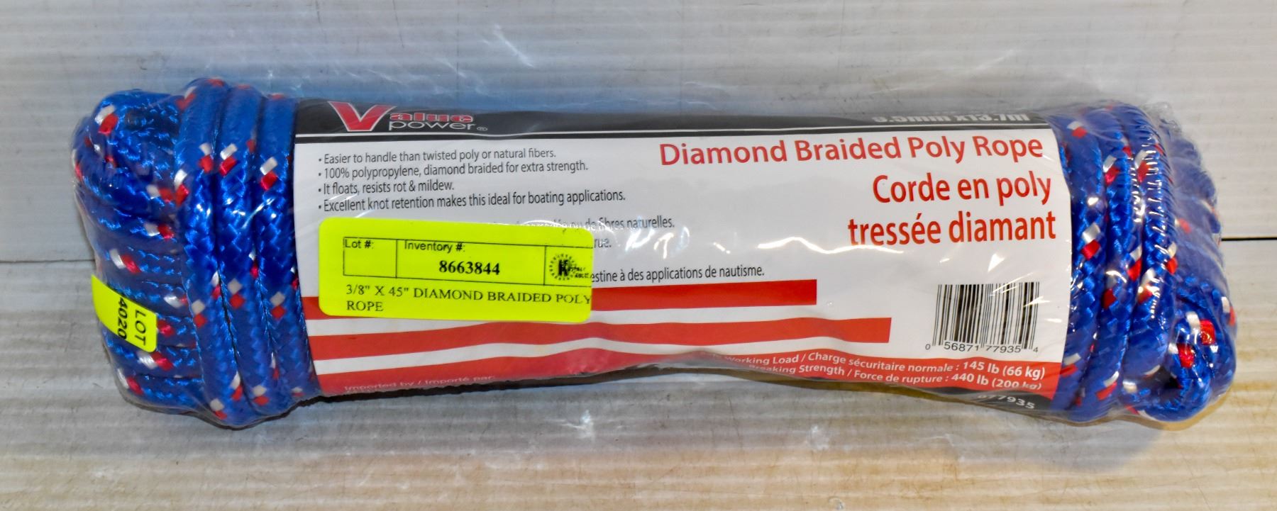 3/8" X 45" DIAMOND BRAIDED POLY ROPE