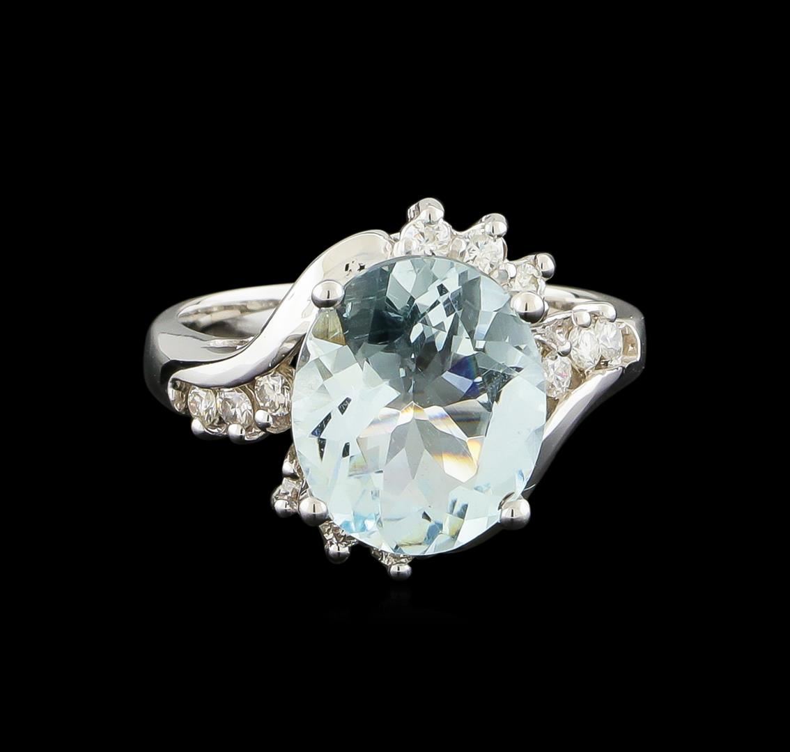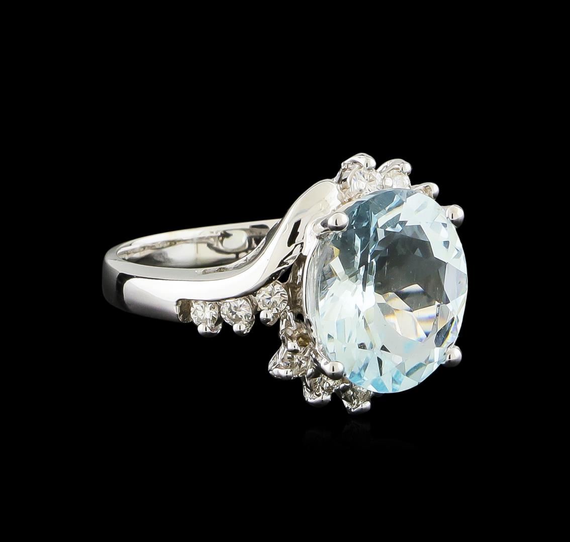 One Ring featuring: 14KT White Gold weighing 5.12 grams containing one Aquamarine center stone with a total weight of 3.8ct and Diamonds with a total weight of 0.3ct.