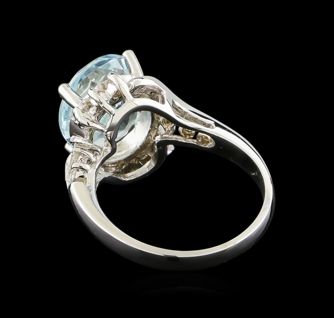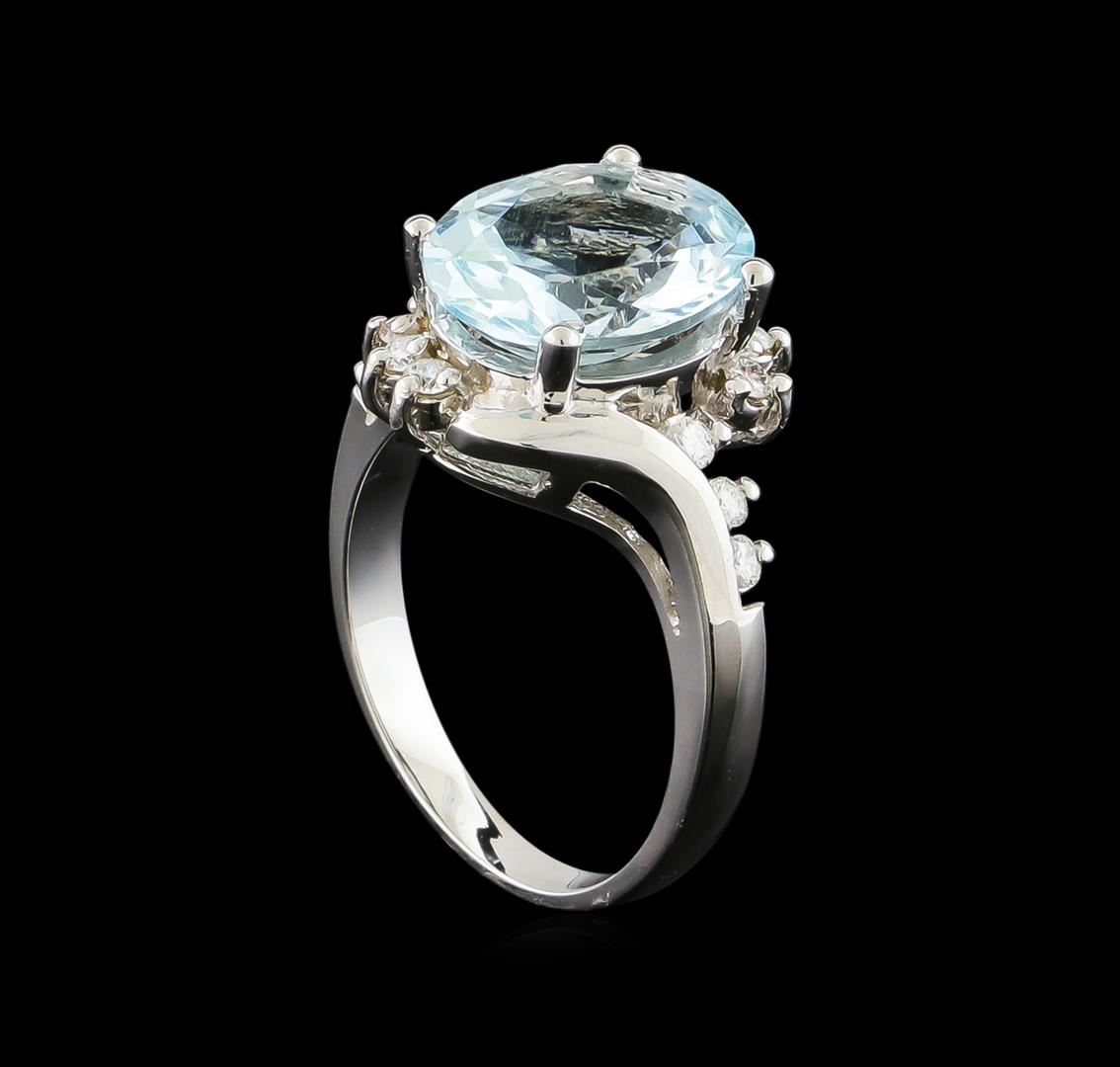 One Ring featuring: 14KT White Gold weighing 5.12 grams containing one Aquamarine center stone with a total weight of 3.8ct and Diamonds with a total weight of 0.3ct.