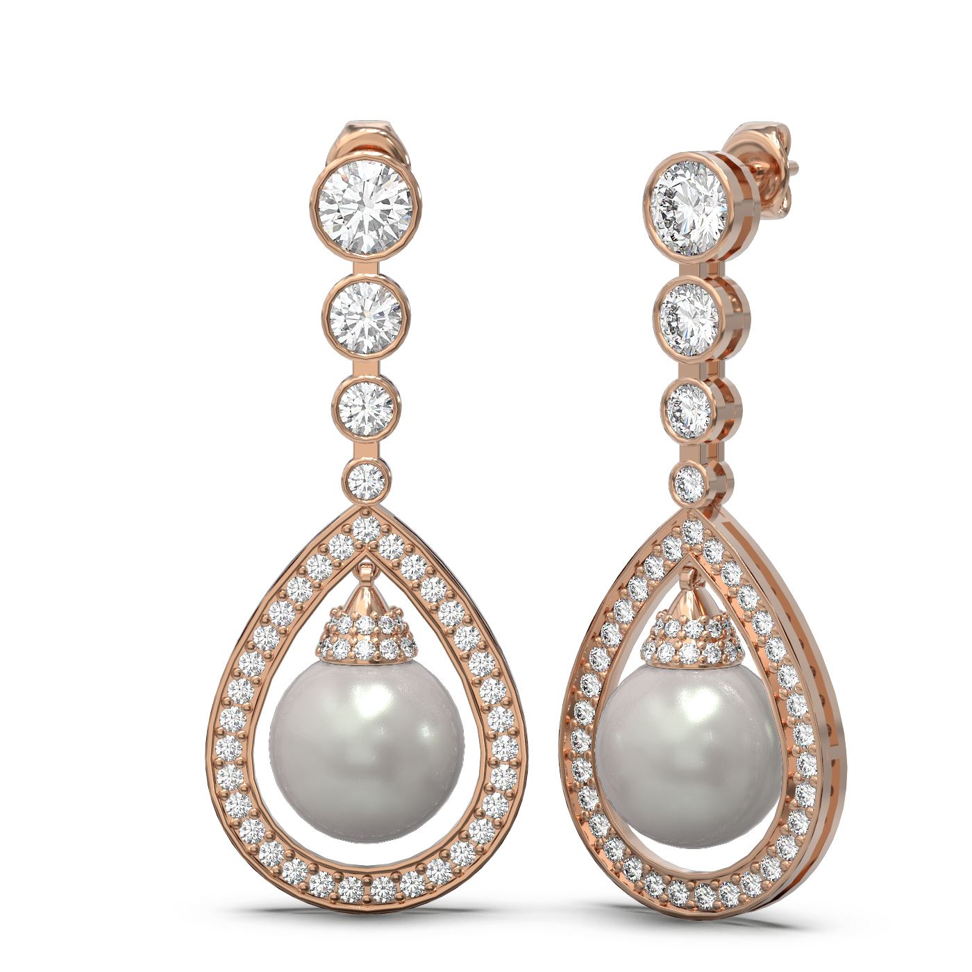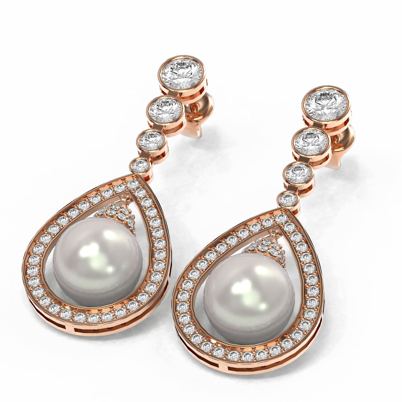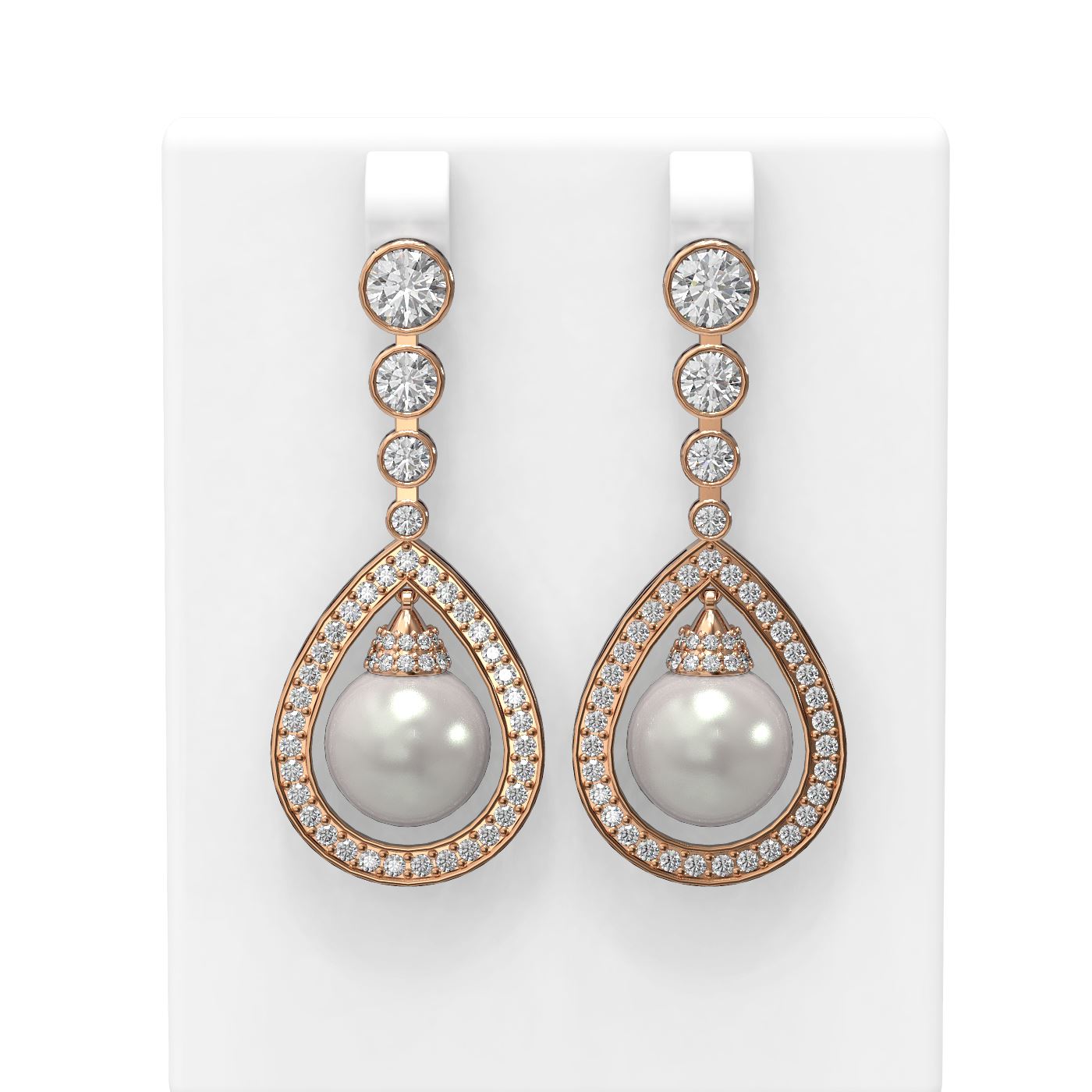 REF-446A2N - SKU: 55020 ---- 3.8 ctw Diamond & Pearl Earrings 18K Rose Gold