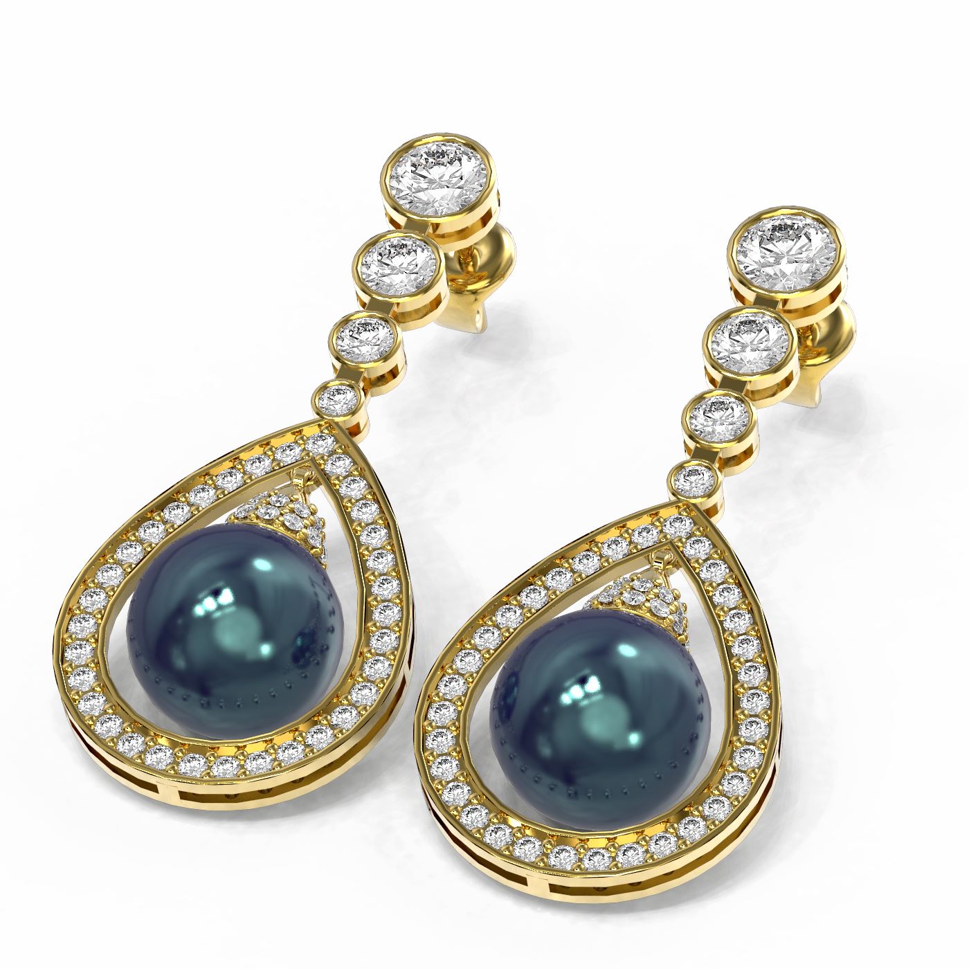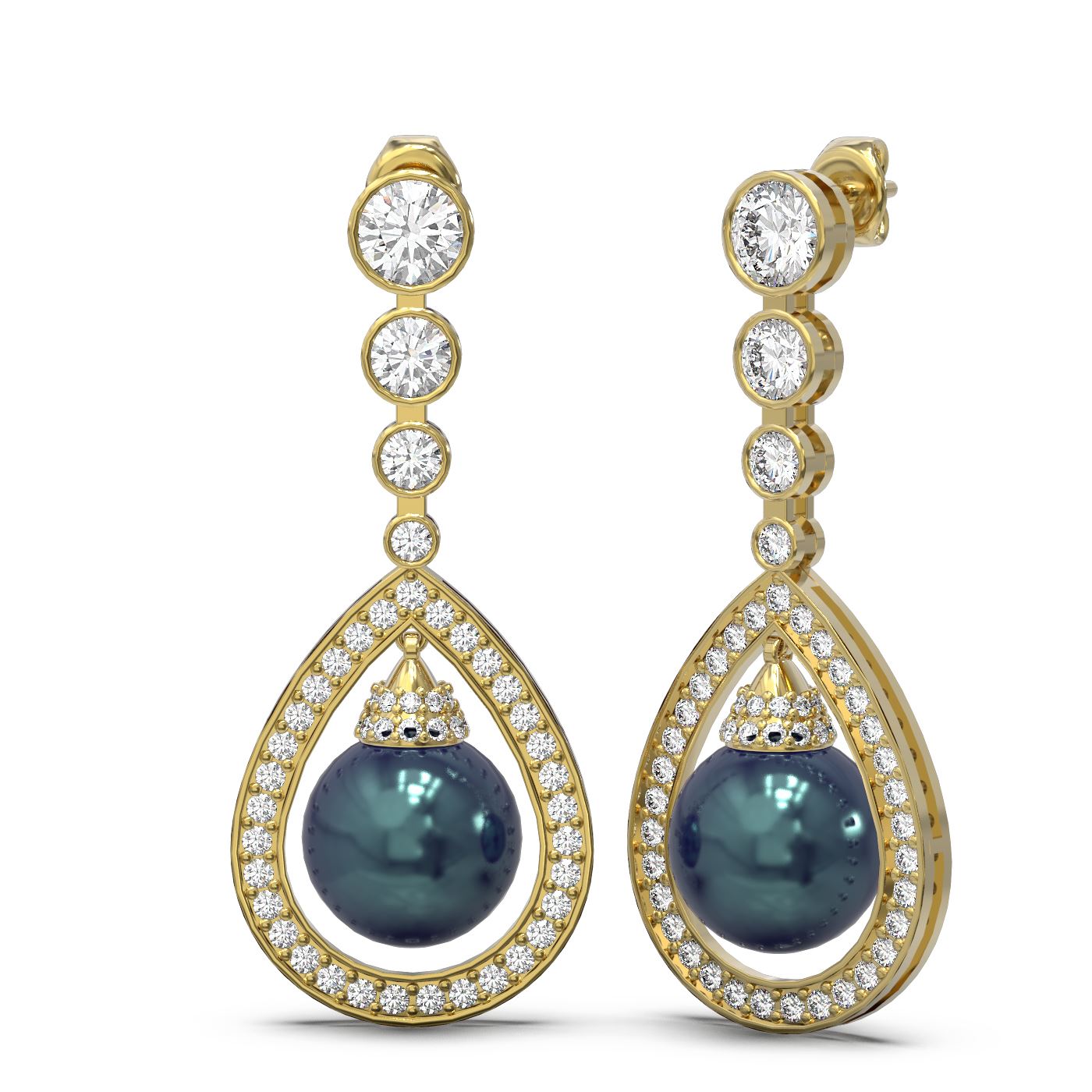 REF-446Y2X - SKU: 55018 ---- 3.8 ctw Diamond & Pearl Earrings 18K Yellow Gold