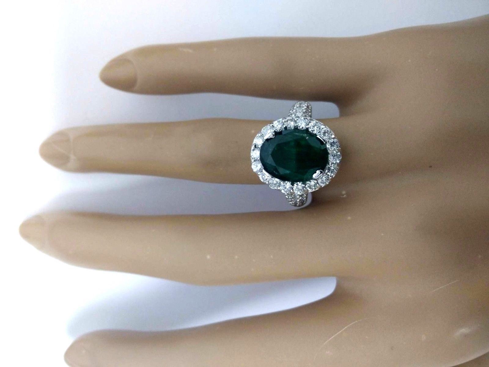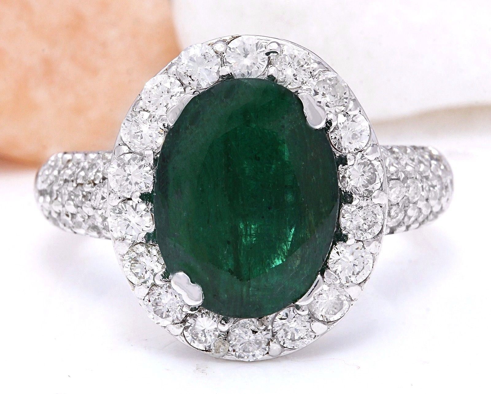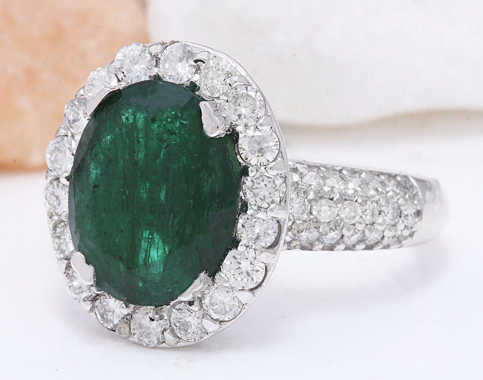 3.80 Carat Natural Emerald 14K Solid White Gold Diamond Ring