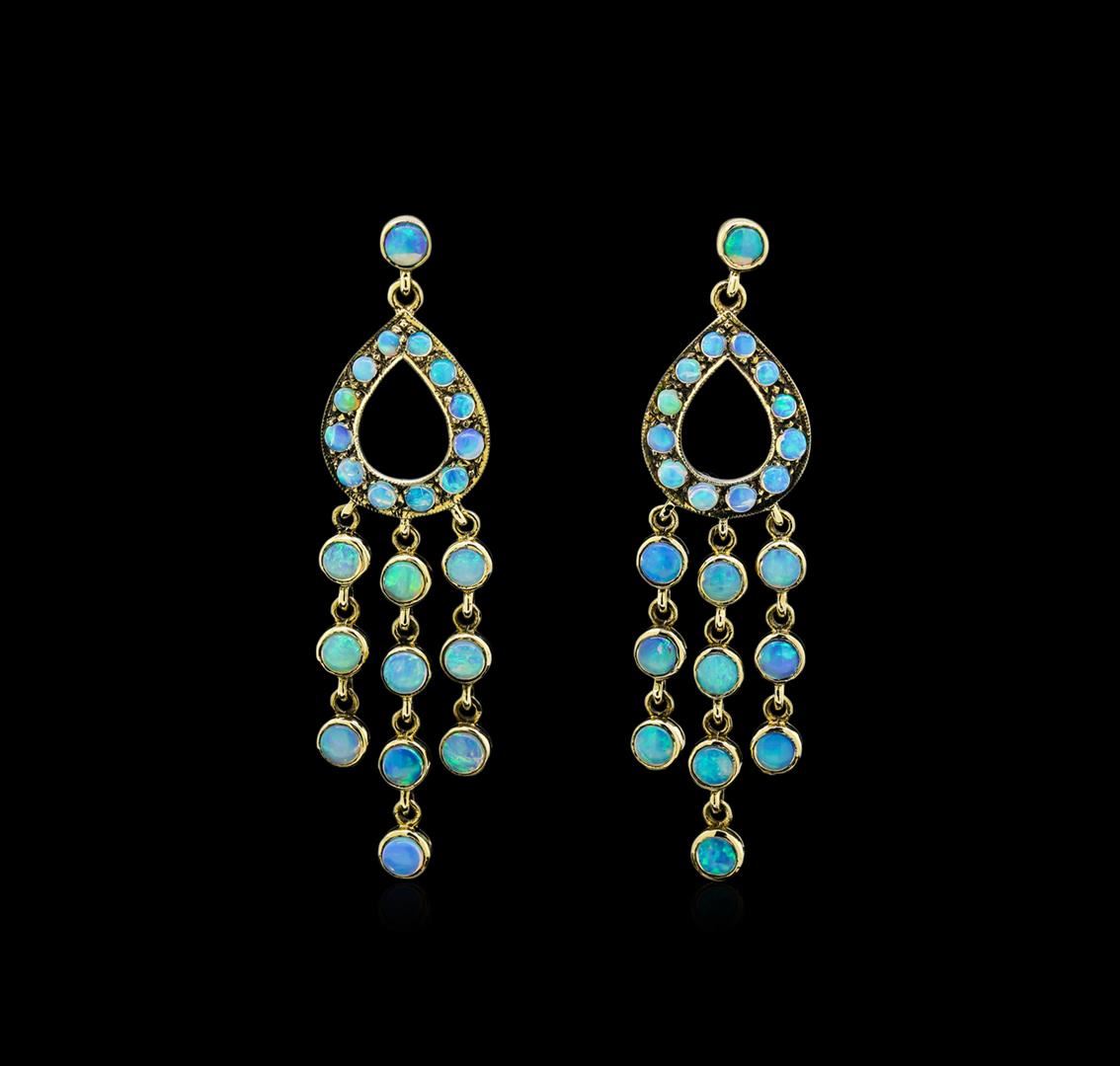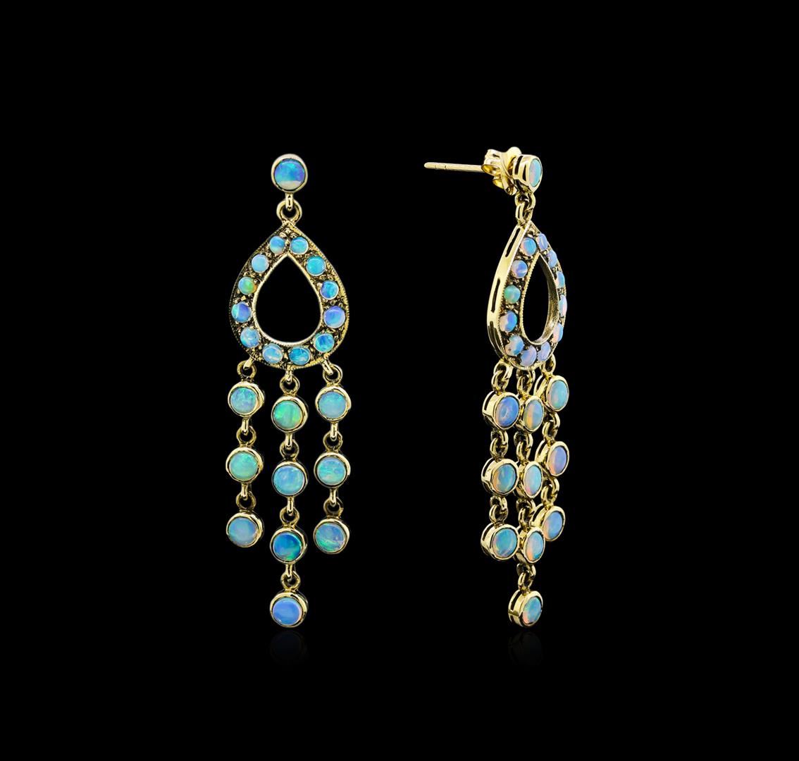 One pair of earrings featuring: 18KT yellow gold weighing 8.70 grams containing opals with a total weight of 3.80ct.