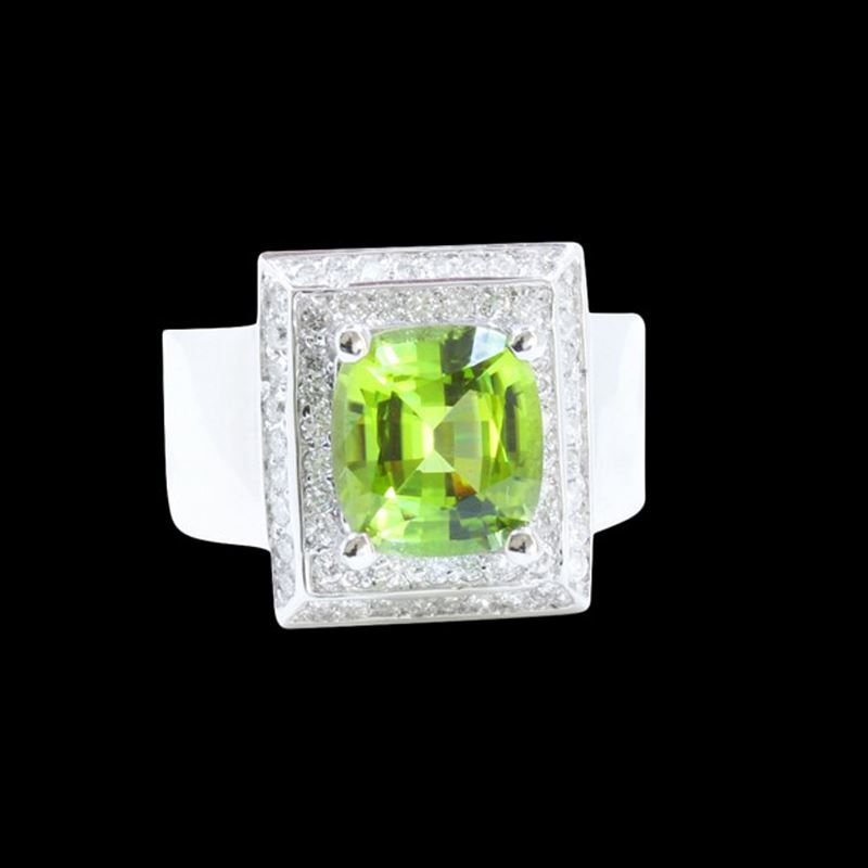 14K W/G NATURAL BURMA PERIDOT RING: 10.99GRAM /PERIDOT: 3.80CT/DIA: 0.64CT /#GVR1349
