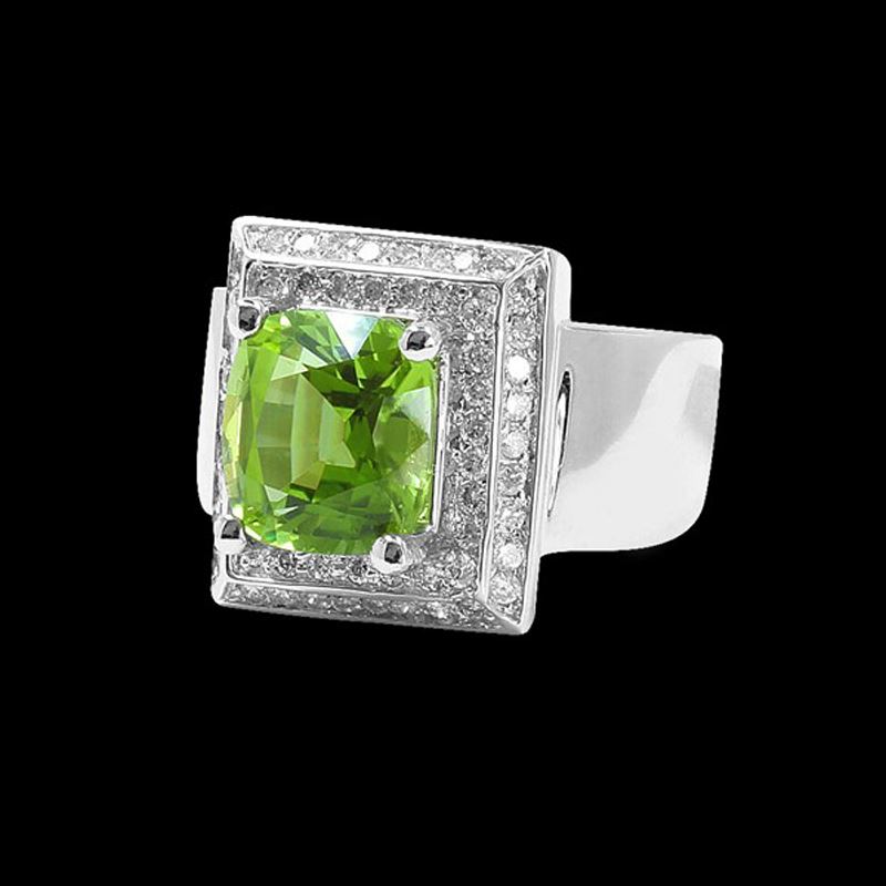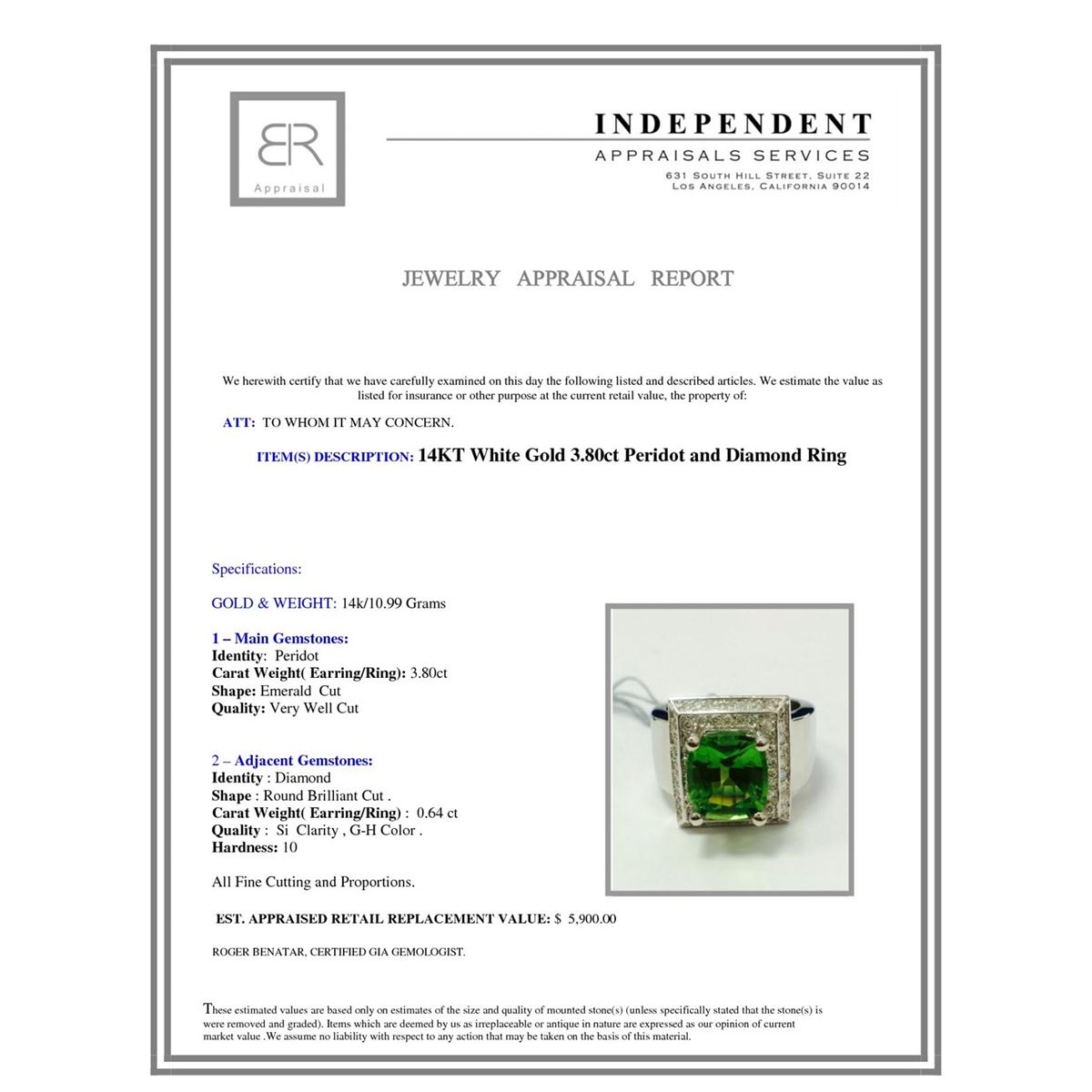 14K W/G NATURAL BURMA PERIDOT RING: 10.99GRAM /PERIDOT: 3.80CT/DIA: 0.64CT /#GVR1349