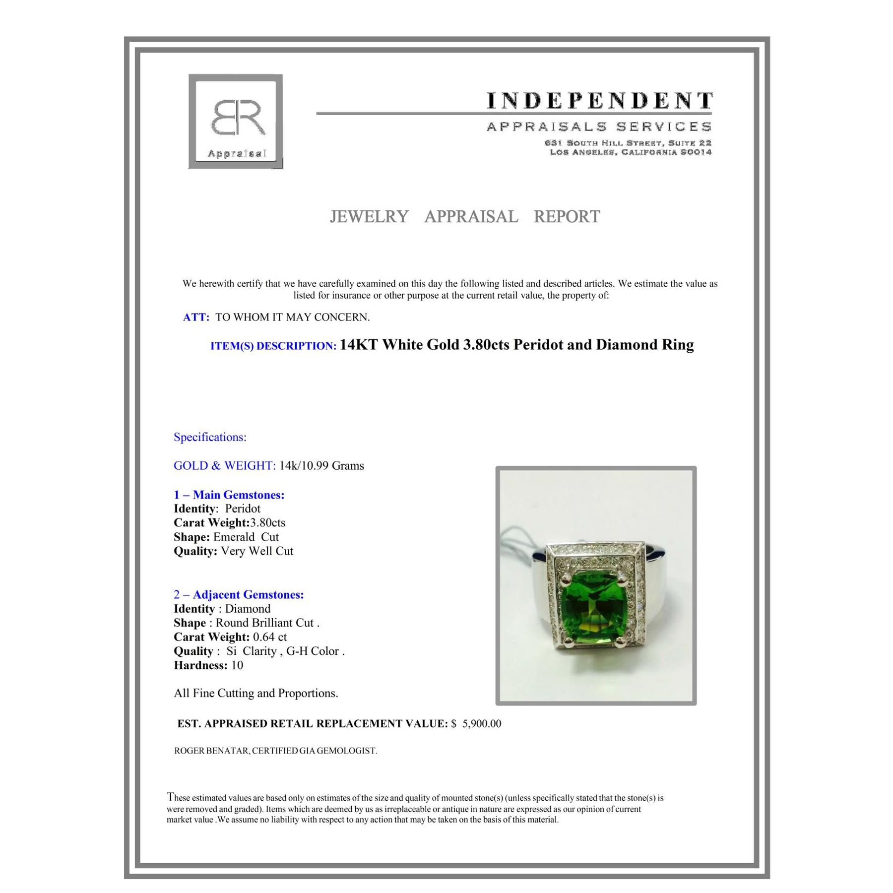 14K W/G NATURAL BURMA PERIDOT RING: 10.99GRAM /PERIDOT: 3.80CT/DIA: 0.64CT /#GVR1349