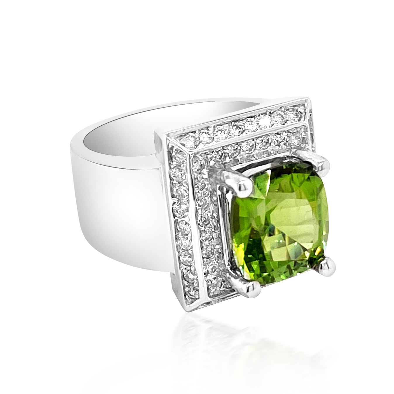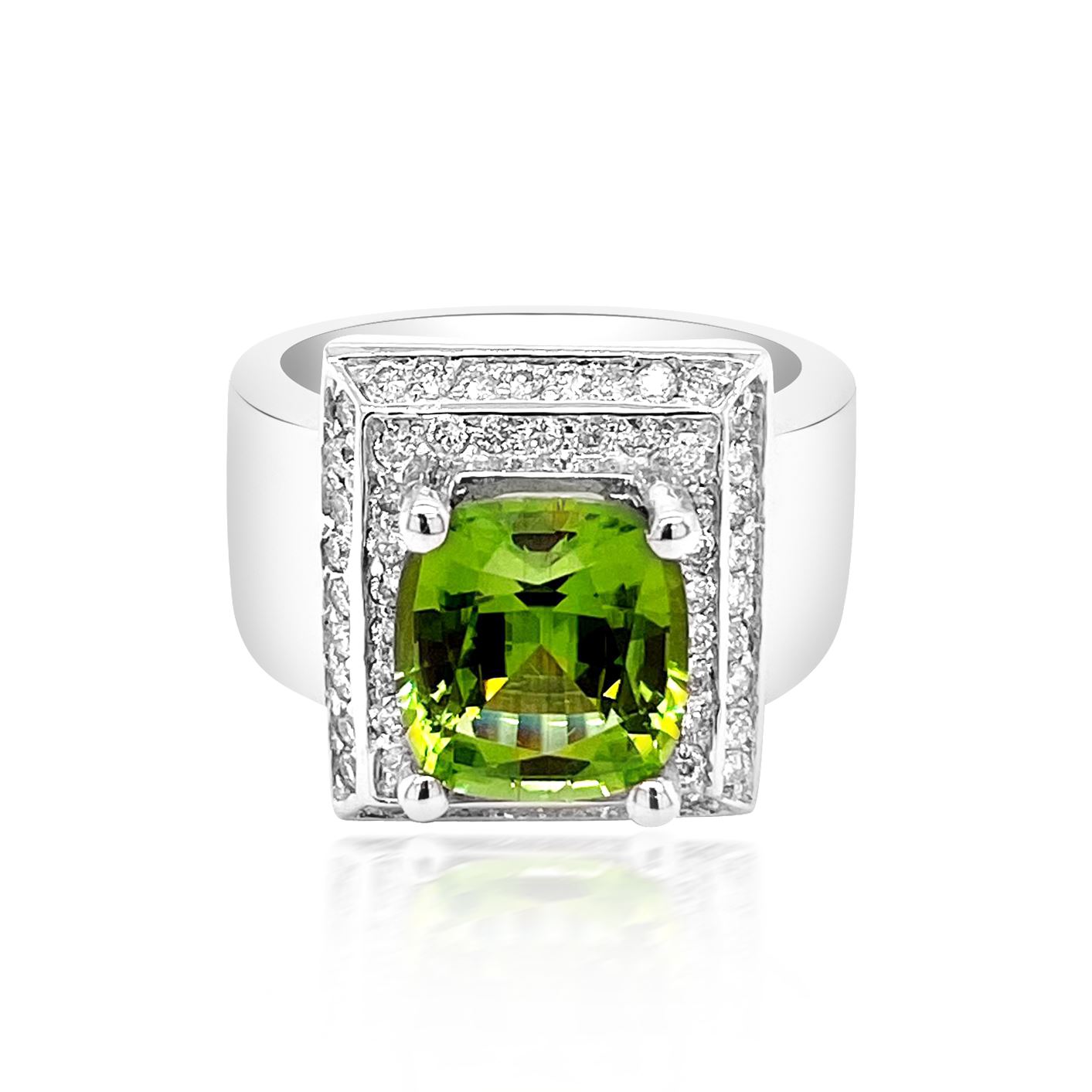14K W/G NATURAL BURMA PERIDOT RING: 10.99GRAM /PERIDOT: 3.80CT/DIA: 0.64CT /#GVR1349