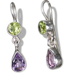 3.80g Earring of Peridot and Amethyst Sterling Silver