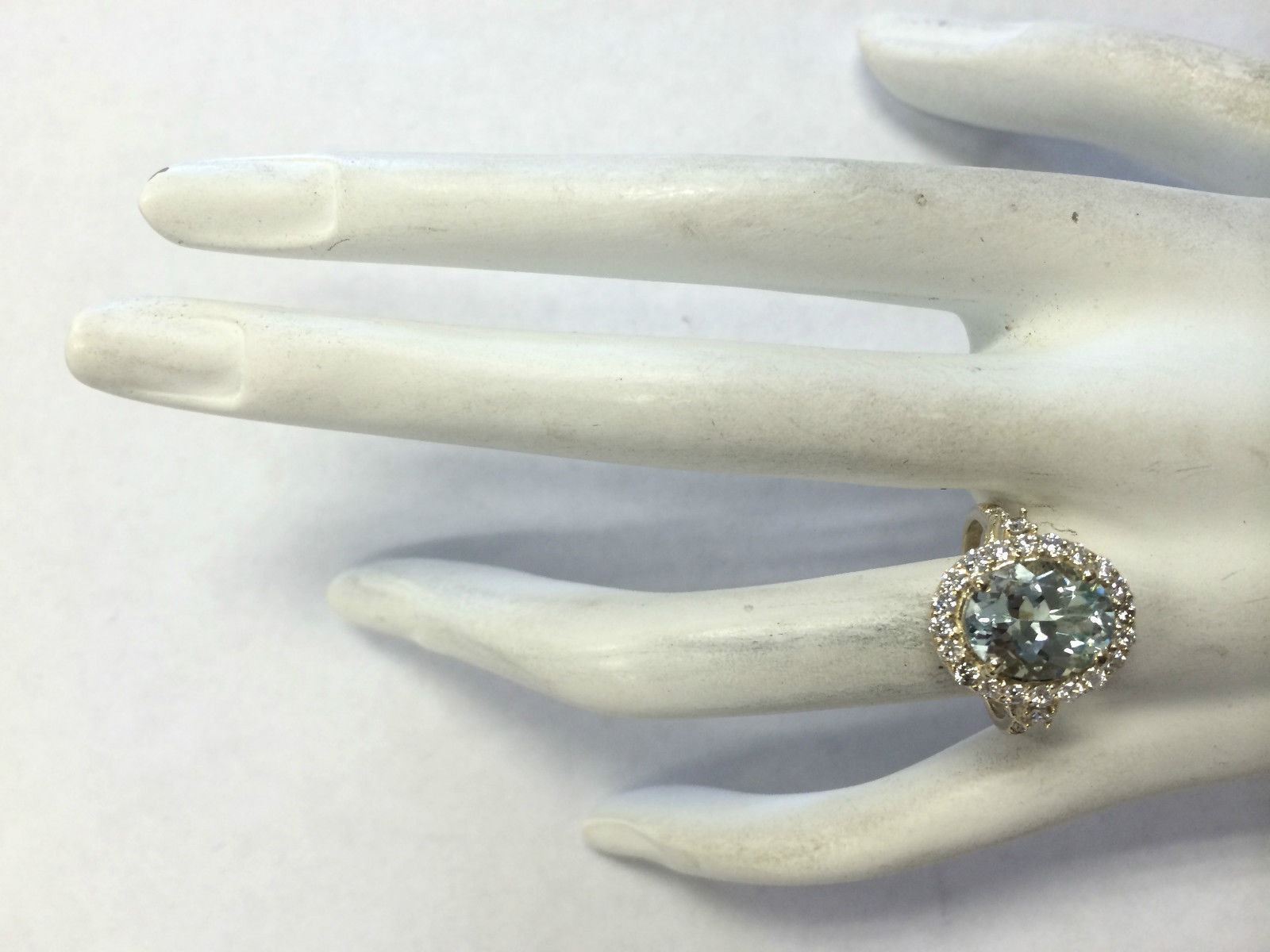 3.81 CTW Natural Aquamarine And Diamond Ring In 18K Yellow Gold